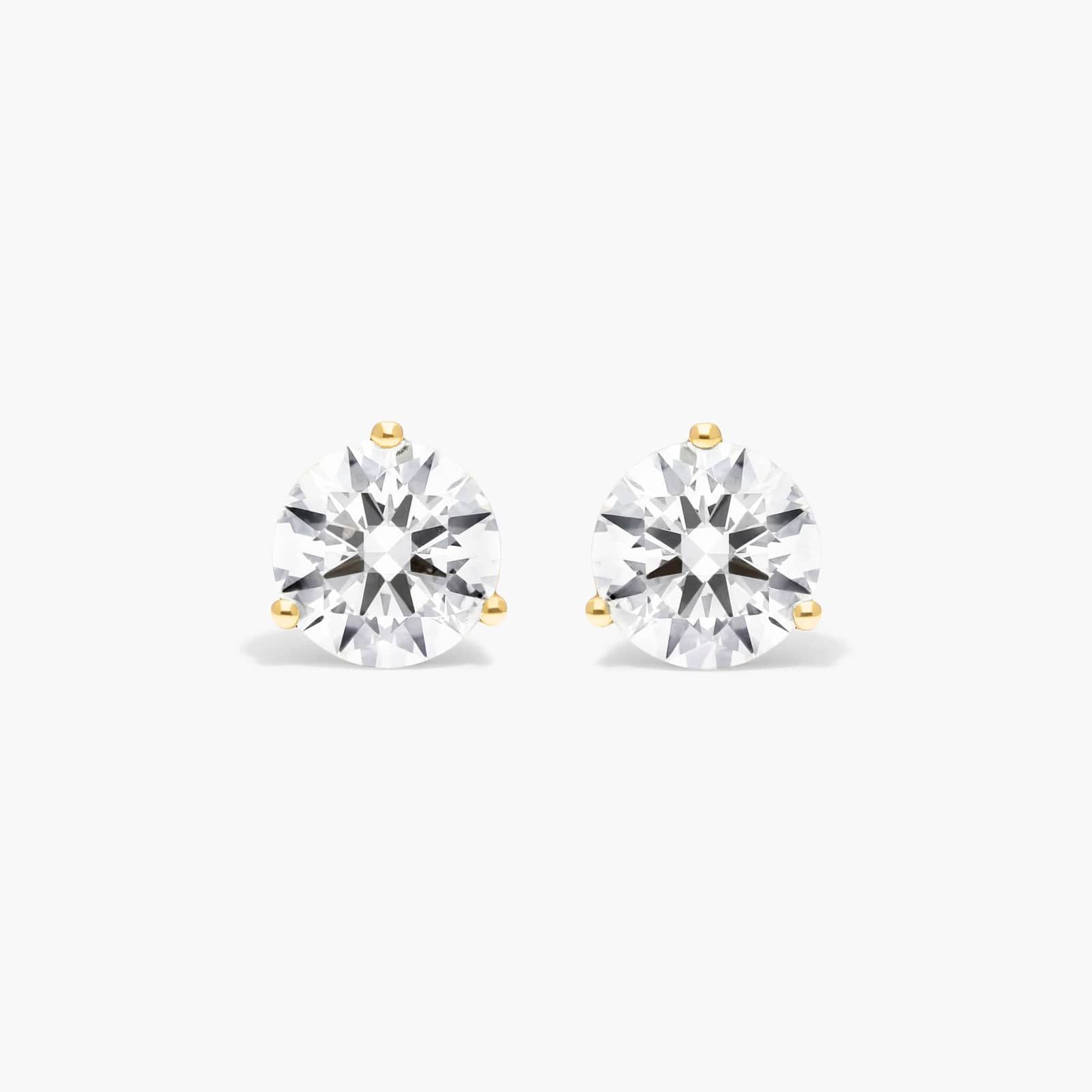 14K Yellow Gold Three Prong Martini Round Brilliant Diamond Stud Earrings (2.00 CTW - F-G / VS1-VS2)