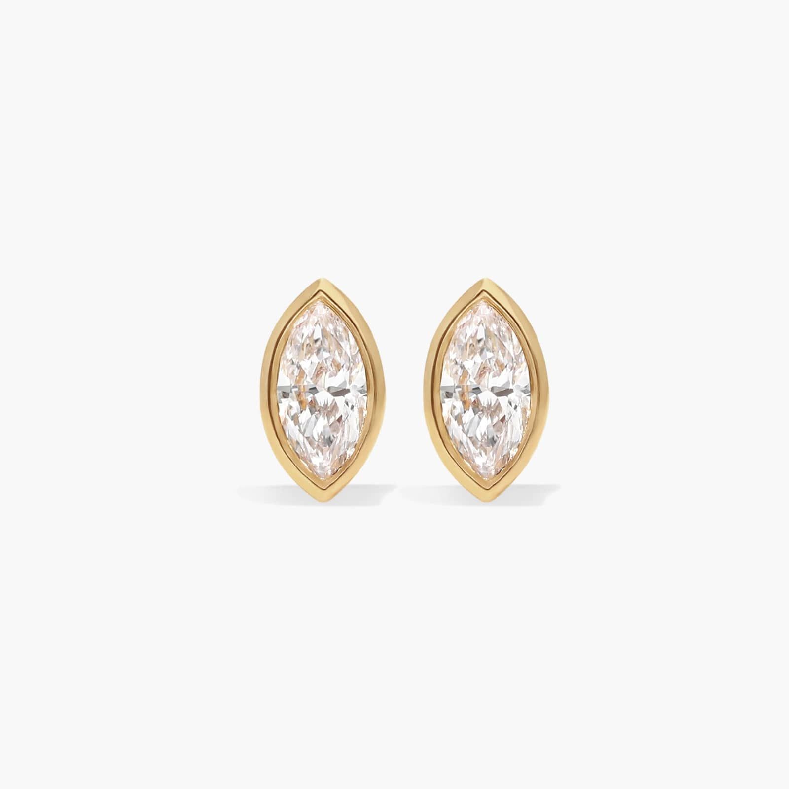 The marquise cut combines brilliance and beauty for unique style. Add these 14k yellow gold bezel diamond stud earrings to your own collection or give them as a memorable gift.