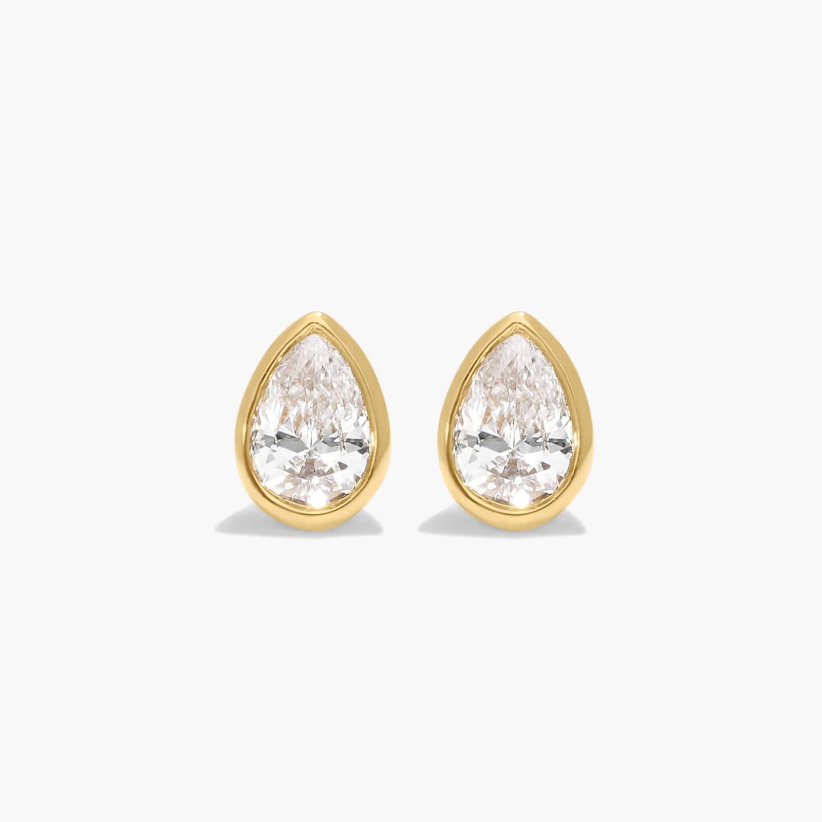Add the beauty of pear cut diamonds to your look with these bezel set earrings. Crafted in 14k yellow gold, they're effortlessly stylish.