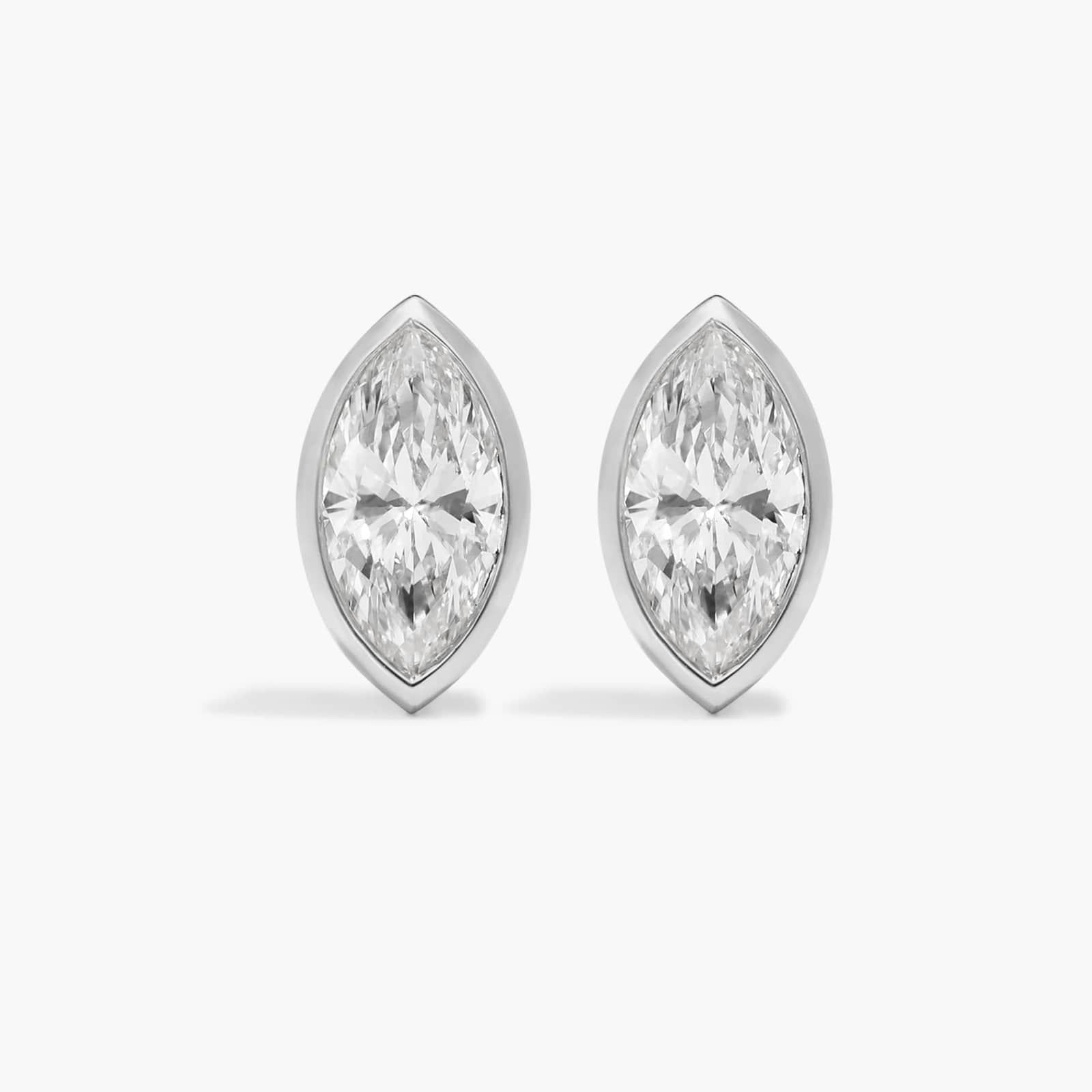 The marquise cut combines brilliance and beauty for unique style. Add these 14k white gold bezel diamond stud earrings to your own collection or give them as a memorable gift.