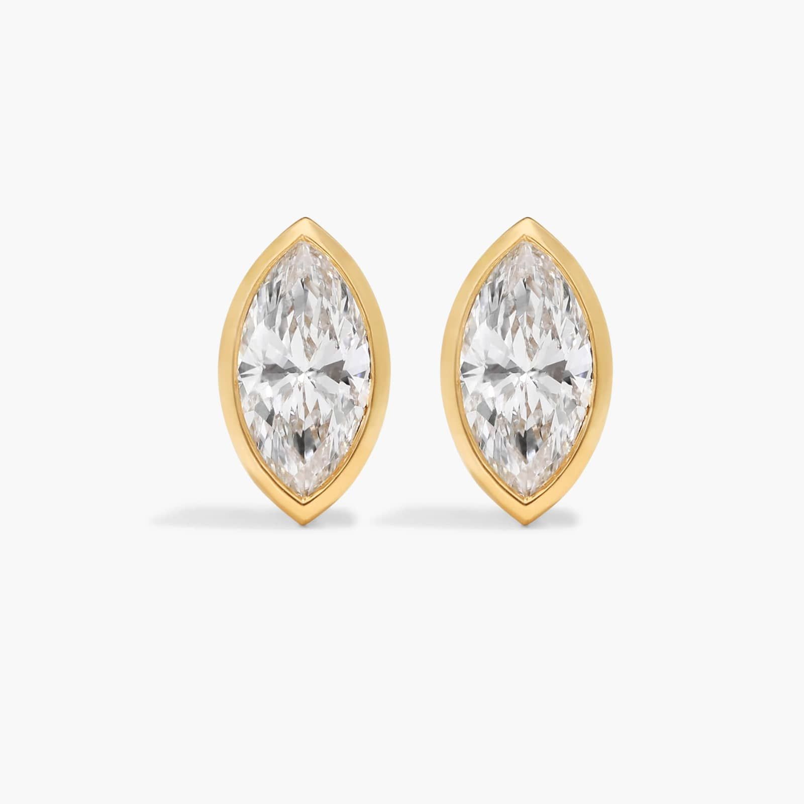 The marquise cut combines brilliance and beauty for unique style. Add these 14k yellow gold bezel diamond stud earrings to your own collection or give them as a memorable gift.