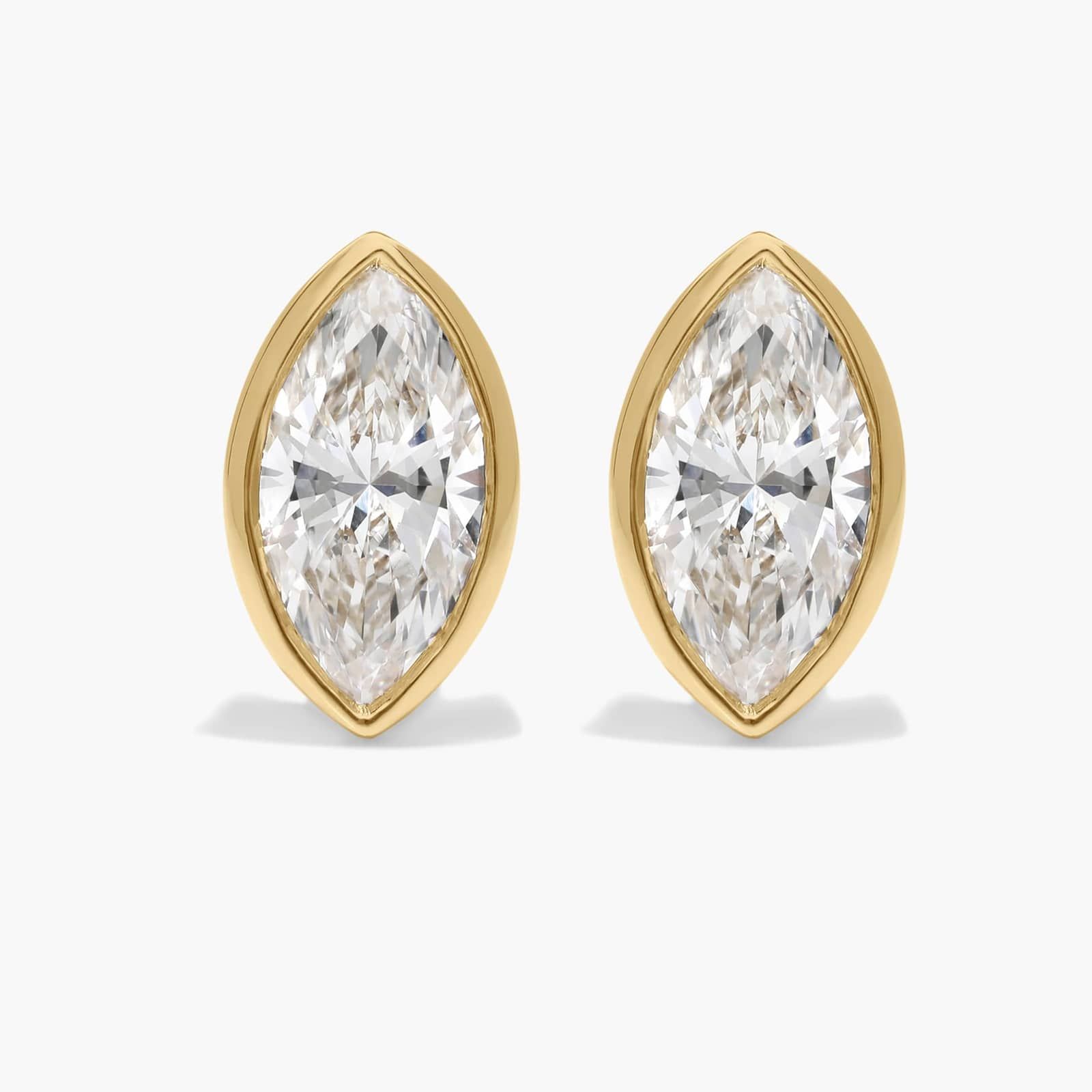 The marquise cut combines brilliance and beauty for unique style. Add these 14k yellow gold bezel diamond stud earrings to your own collection or give them as a memorable gift.