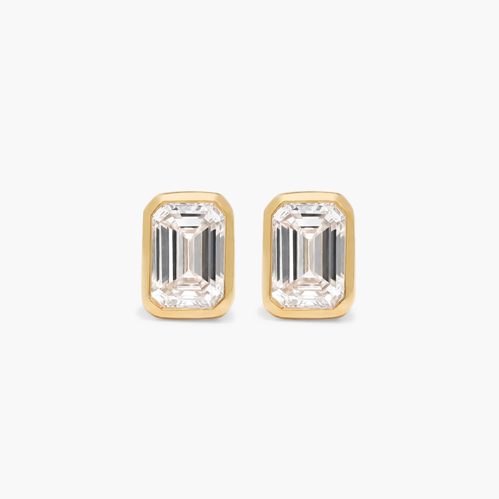 Add the beauty of emerald cut lab-grown diamonds to your look with these bezel set earrings. Crafted in 14k yellow gold, they're effortlessly stylish.