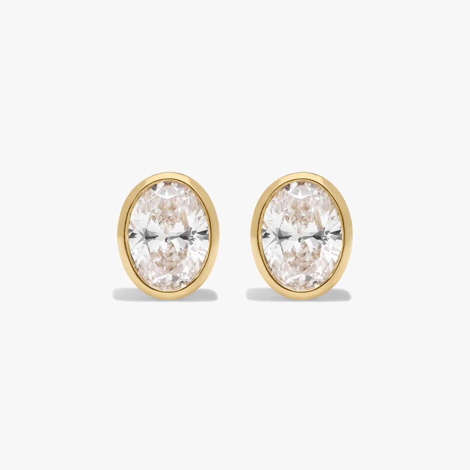 Add the beauty of oval cut lab-grown diamonds to your look with these bezel set earrings. Crafted in 14k yellow gold, they're effortlessly stylish.