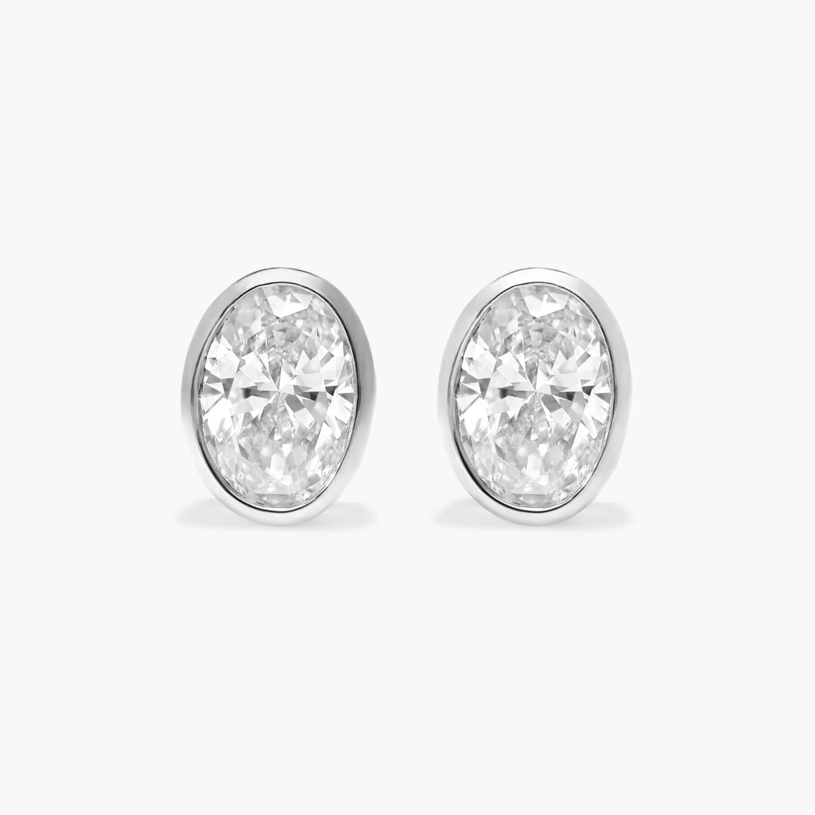 Add the beauty of oval cut lab-grown diamonds to your look with these bezel set earrings. Crafted in 14k white gold, they're effortlessly stylish.