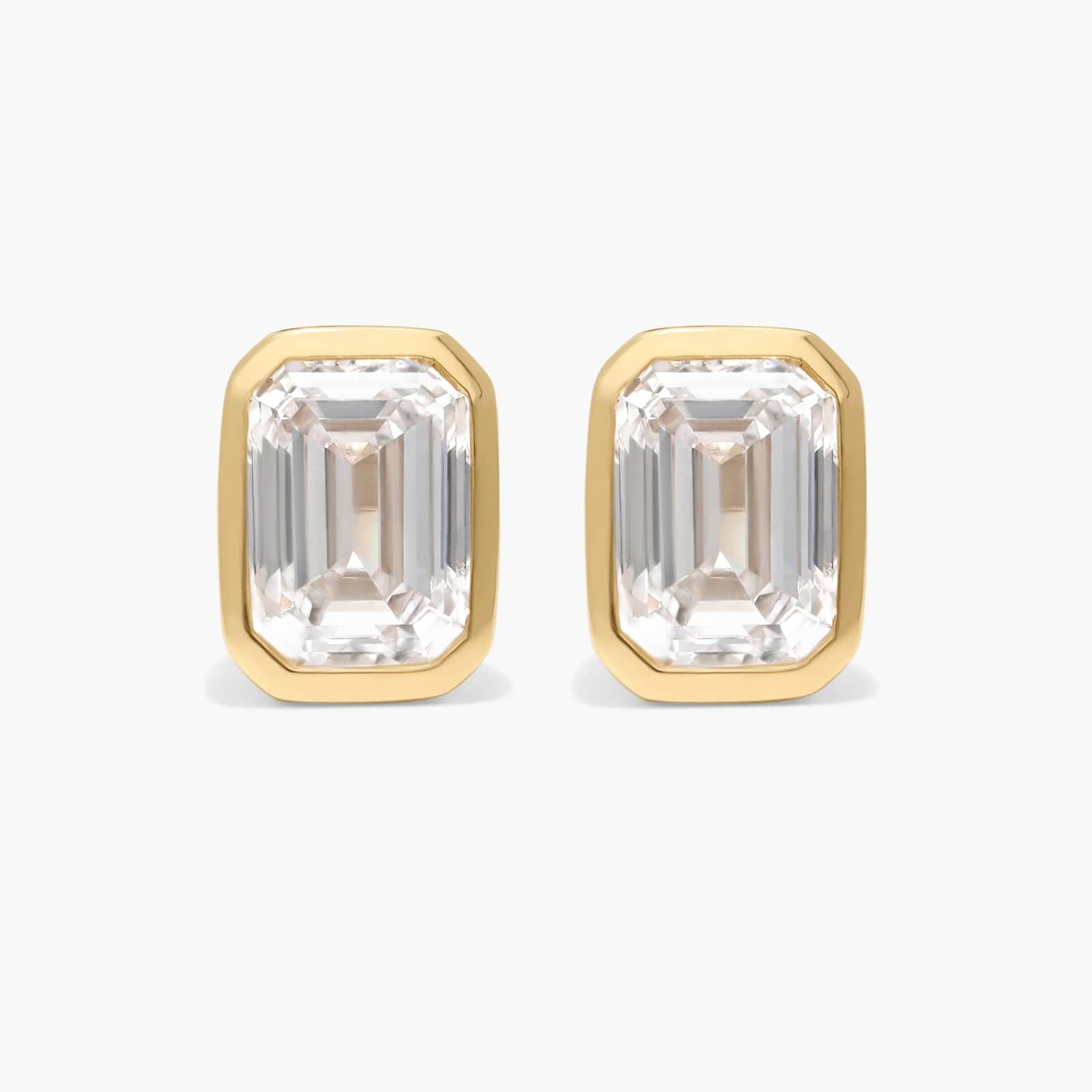Add the beauty of emerald cut lab-grown diamonds to your look with these bezel set earrings. Crafted in 14k yellow gold, they're effortlessly stylish.