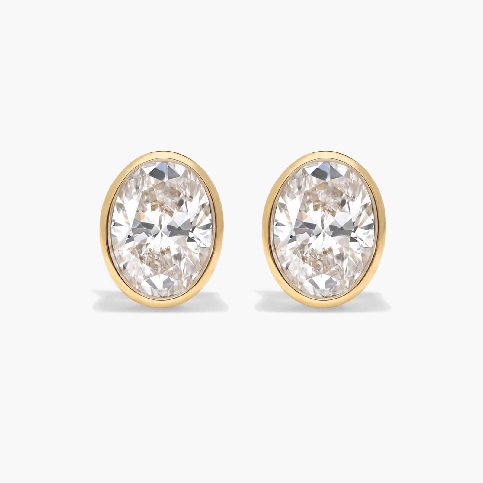 Add the beauty of oval cut lab-grown diamonds to your look with these bezel set earrings. Crafted in 14k yellow gold, they're effortlessly stylish.