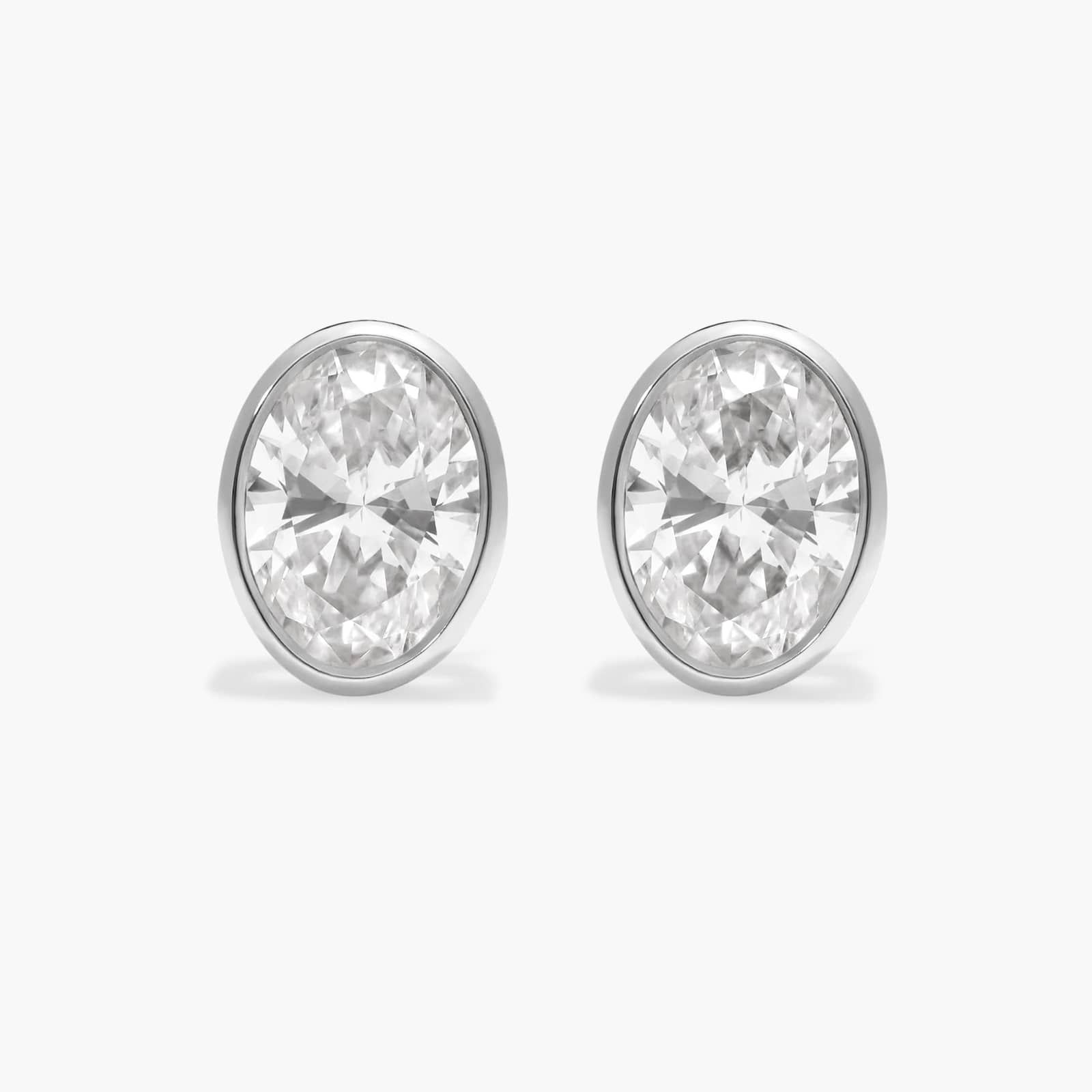 Add the beauty of oval cut lab-grown diamonds to your look with these bezel set earrings. Crafted in 14k white gold, they're effortlessly stylish.