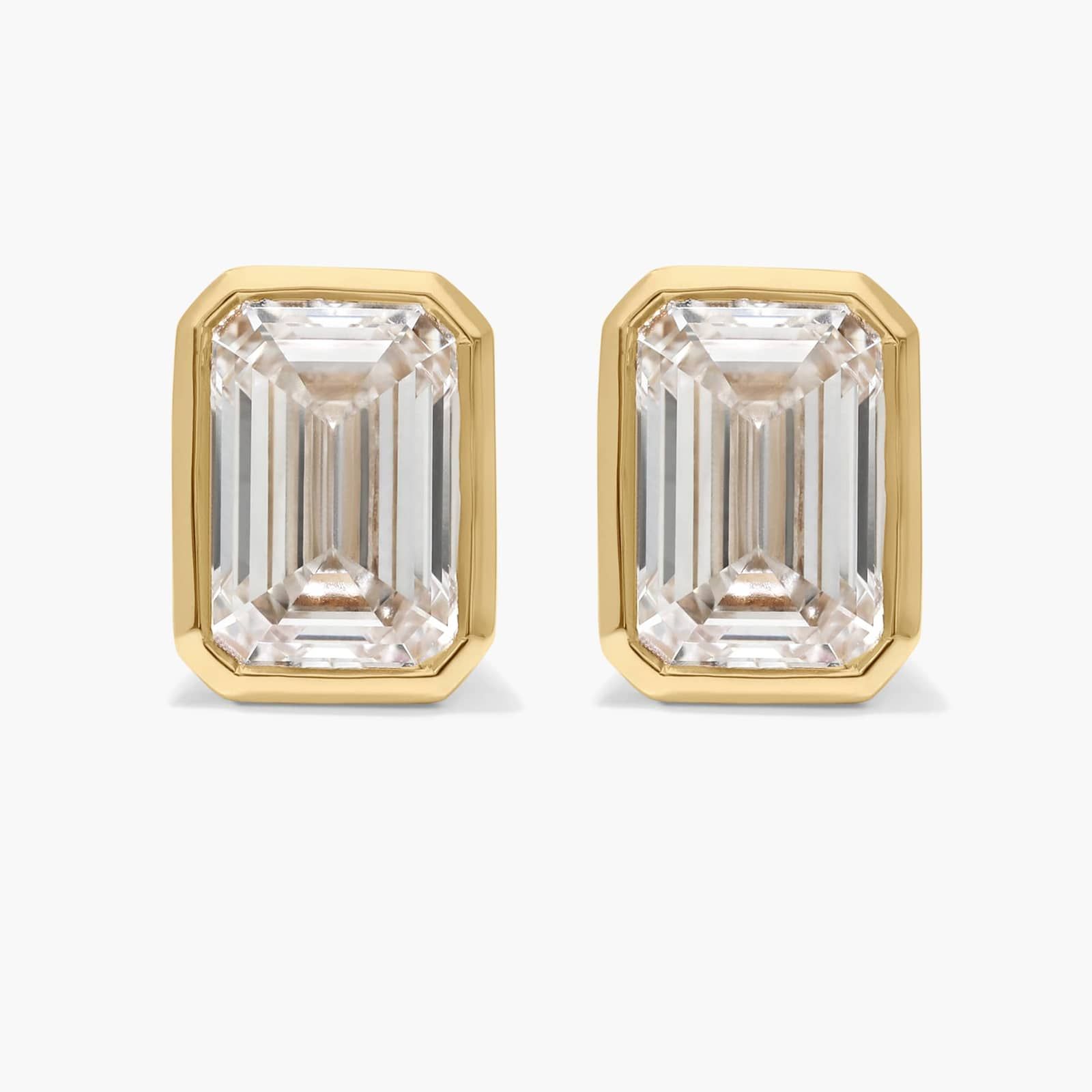 Add the beauty of emerald cut lab-grown diamonds to your look with these bezel set earrings. Crafted in 14k yellow gold, they're effortlessly stylish.