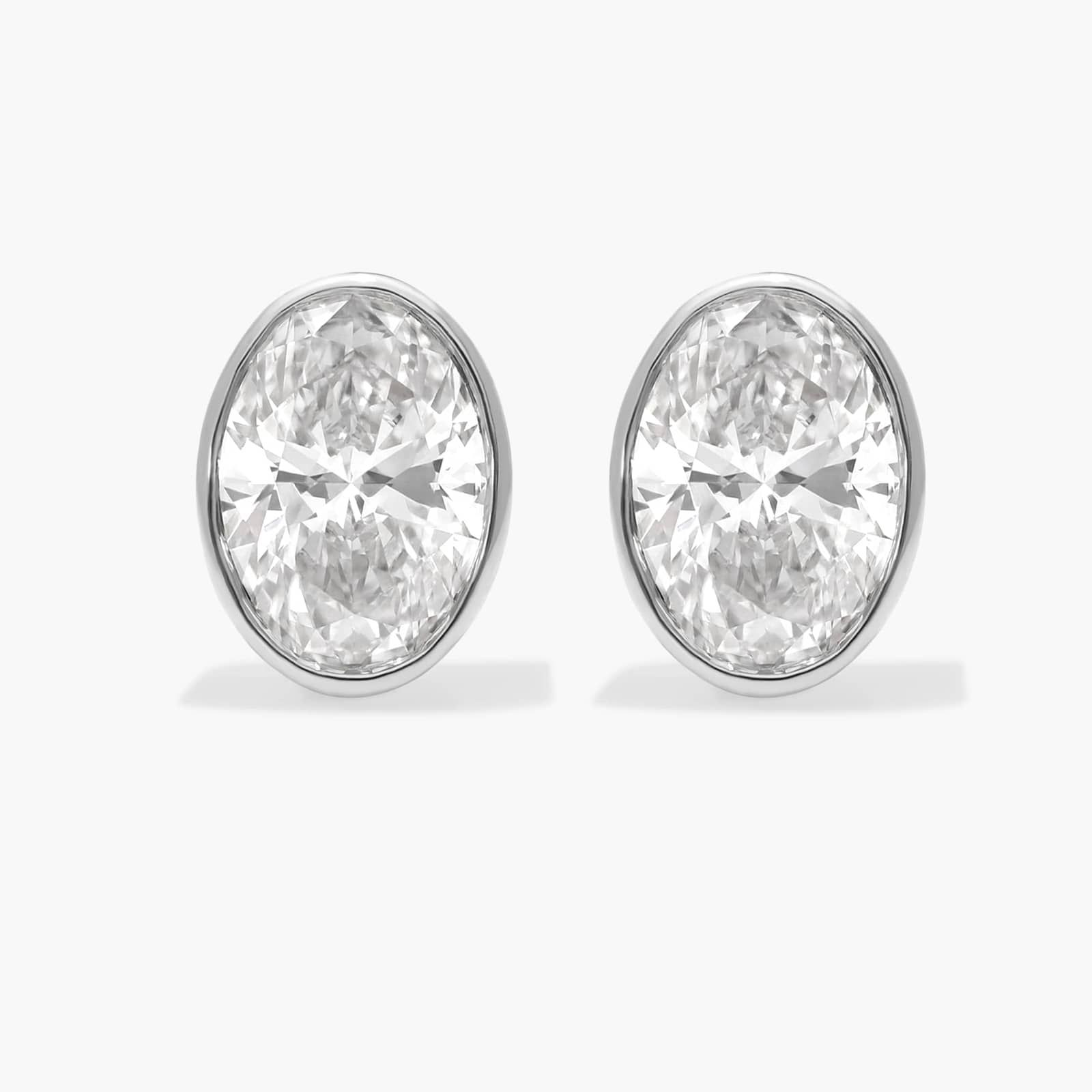 Add the beauty of oval cut lab-grown diamonds to your look with these bezel set earrings. Crafted in 14k white gold, they're effortlessly stylish.