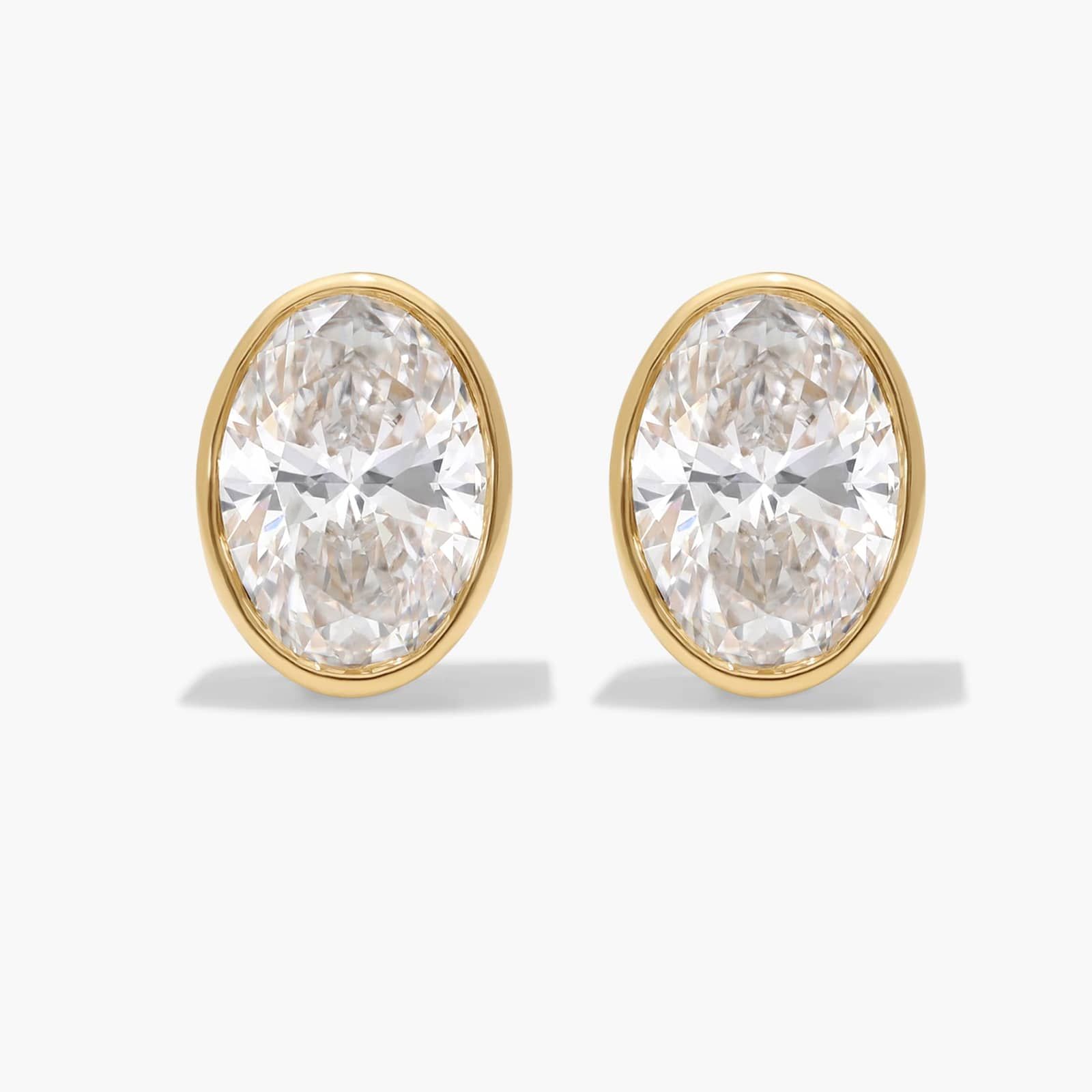 Add the beauty of oval cut lab-grown diamonds to your look with these bezel set earrings. Crafted in 14k yellow gold, they're effortlessly stylish.