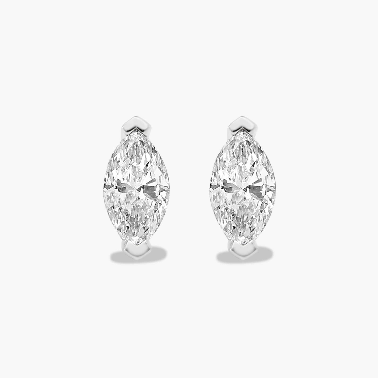This pair of classic marquise cut diamond earrings feature a tapered basket, showcasing the unique characteristics and striking outline of a marquise cut diamond. Splinters of light shimmer and shine with every move.