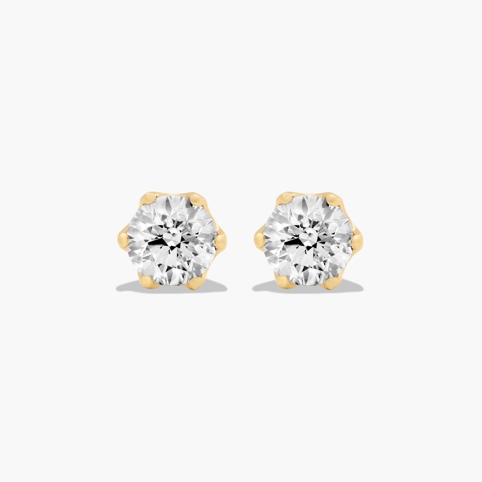 This design is nothing short of stunning, made to accent the beauty of the round brilliant lab created diamond by using six prongs and a scalloped basket. This earring will fit snugly against the ear and features guardian backs.