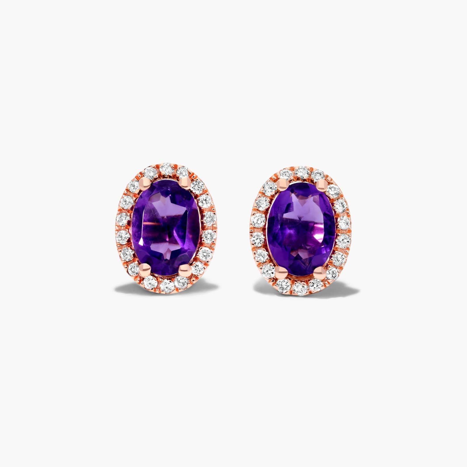Oval Cut Amethyst And Diamond Halo Stud Earrings In 14K Rose Gold