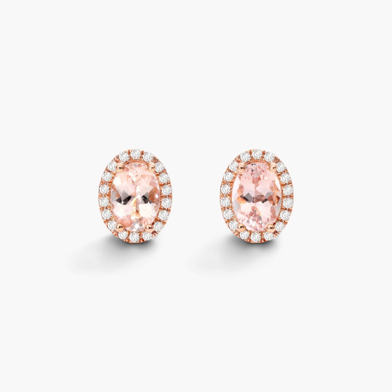 Emphasize the natural lustre of blush pink morganite with the natural beauty of diamonds. These halo studs are a classic look with just a touch of color.
