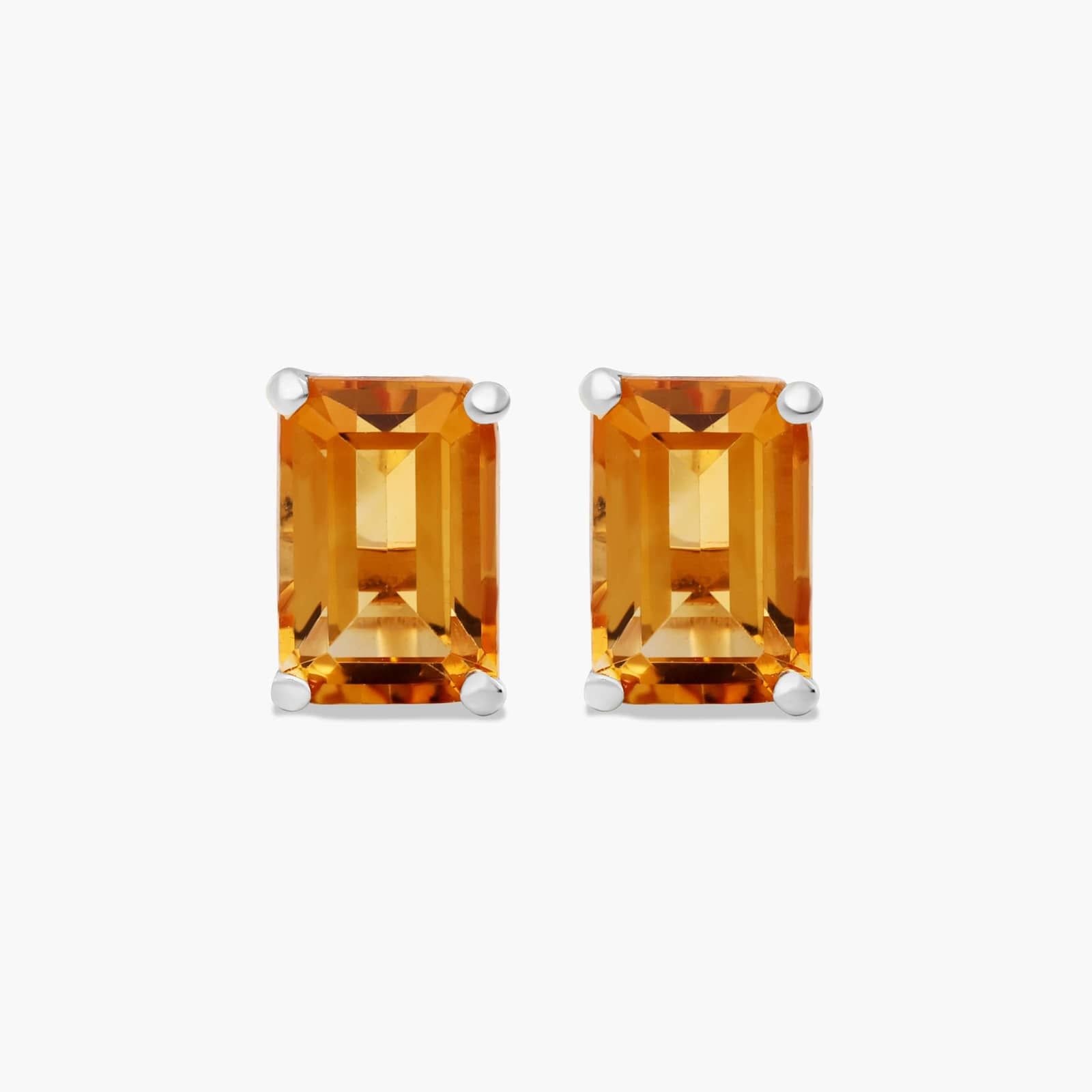 Emerald Cut Citrine Birthstone Stud Earrings In 14K White Gold