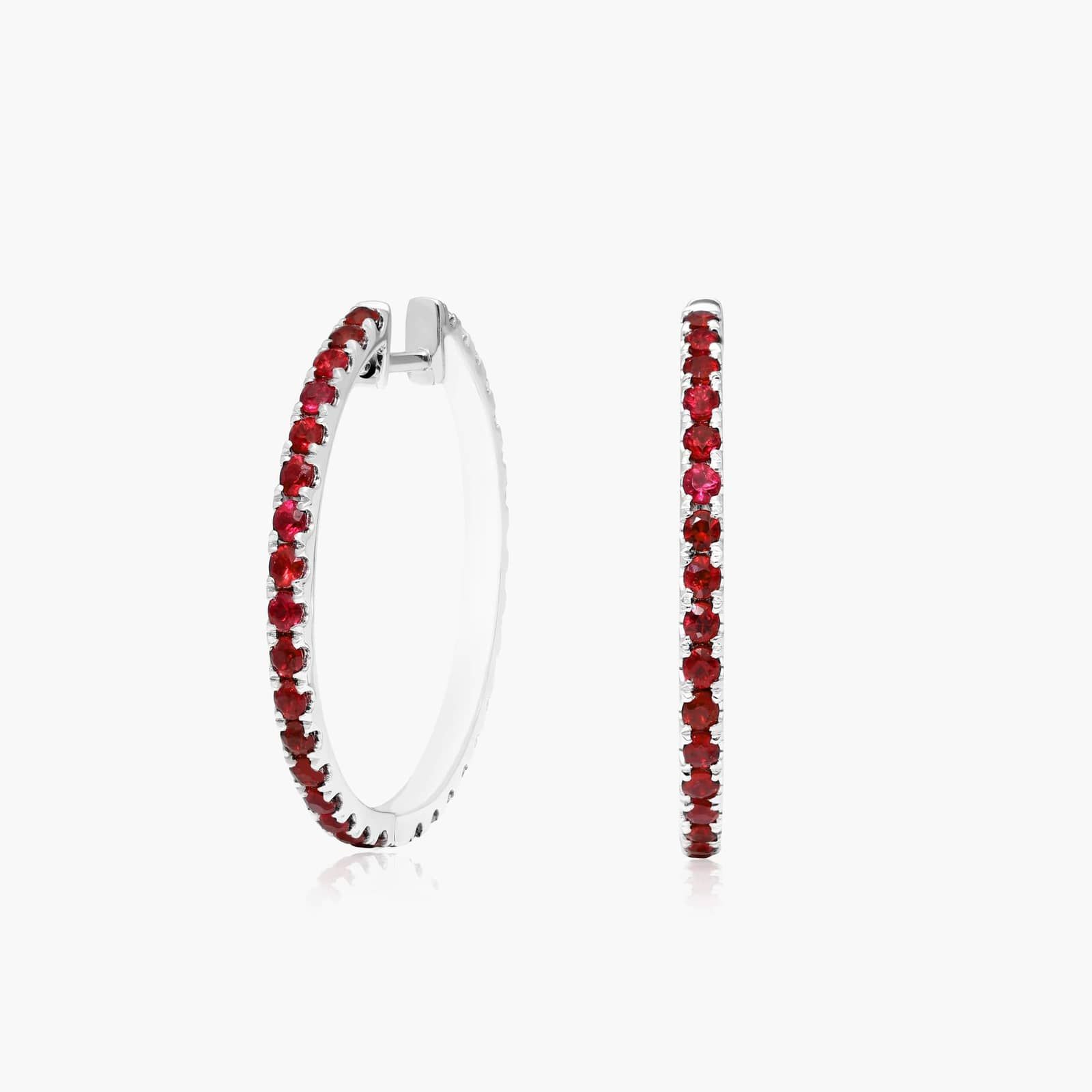 Half And Half Ruby And Diamond Hoop Earrings In 14K White Gold