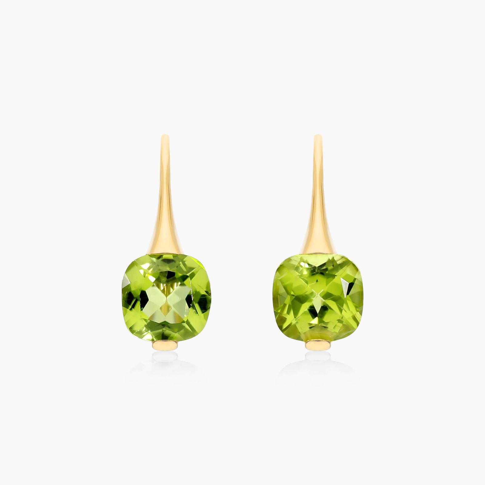 14K Yellow Gold Cushion Peridot Hook Earrings