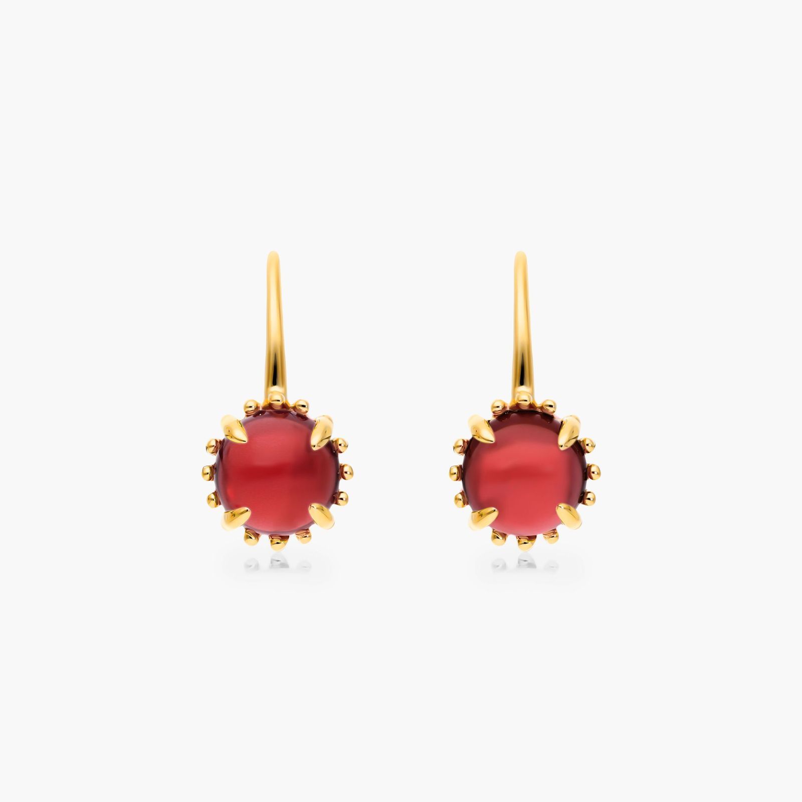 14K Yellow Gold Garnet Beaded Hook Earrings