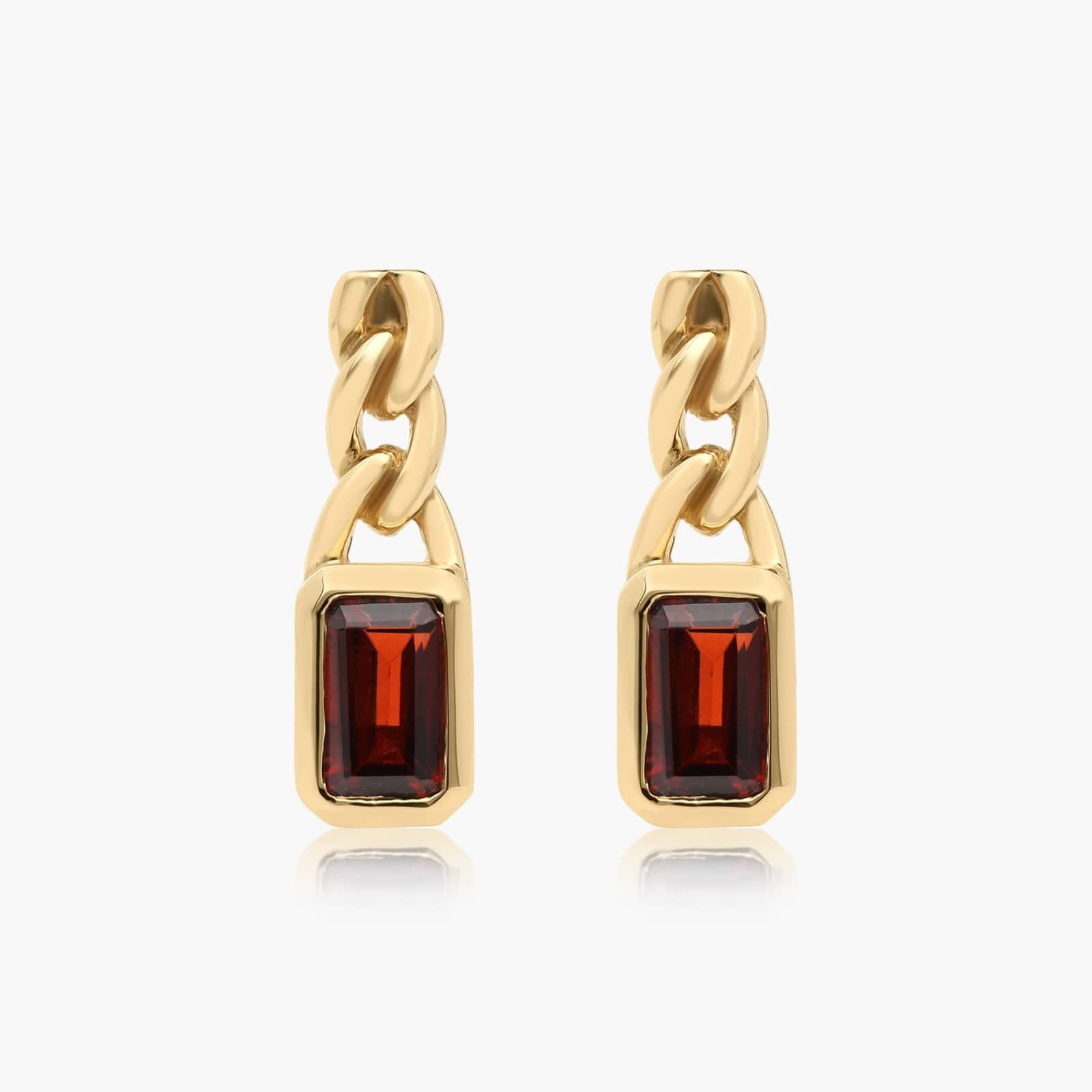 Radiant Reflections Garnet Curb Chain Stud Earrings In 14K Yellow Gold