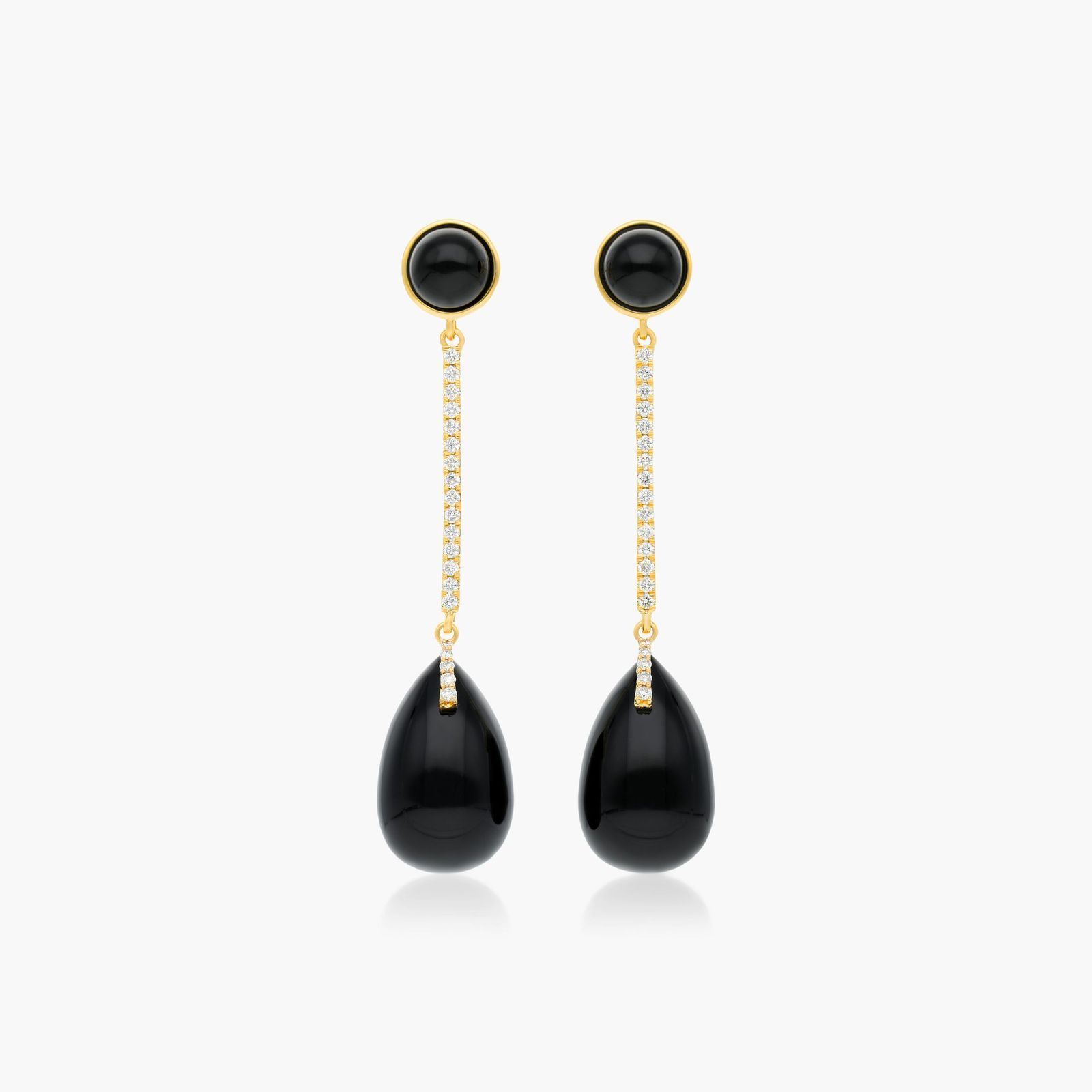 Diamond Bar And Black Onyx Drop Earrings In 18K Yellow Gold
