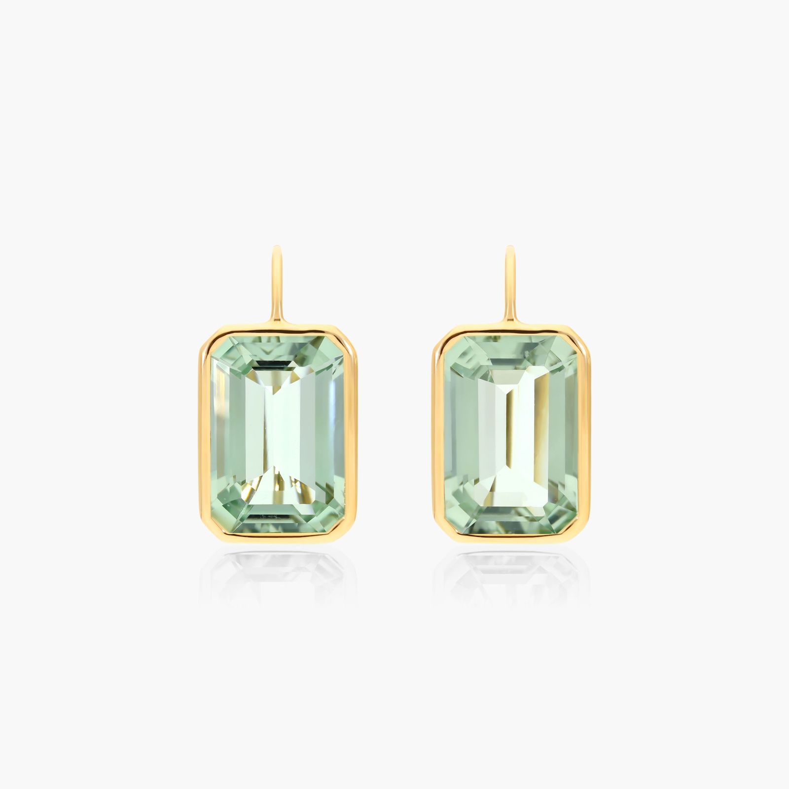 These elegant drop earrings featuring emerald cut prasiolite create strong contrast against the delicateness of 18K yellow gold french wire, creating the perfect balance of soft and strong.