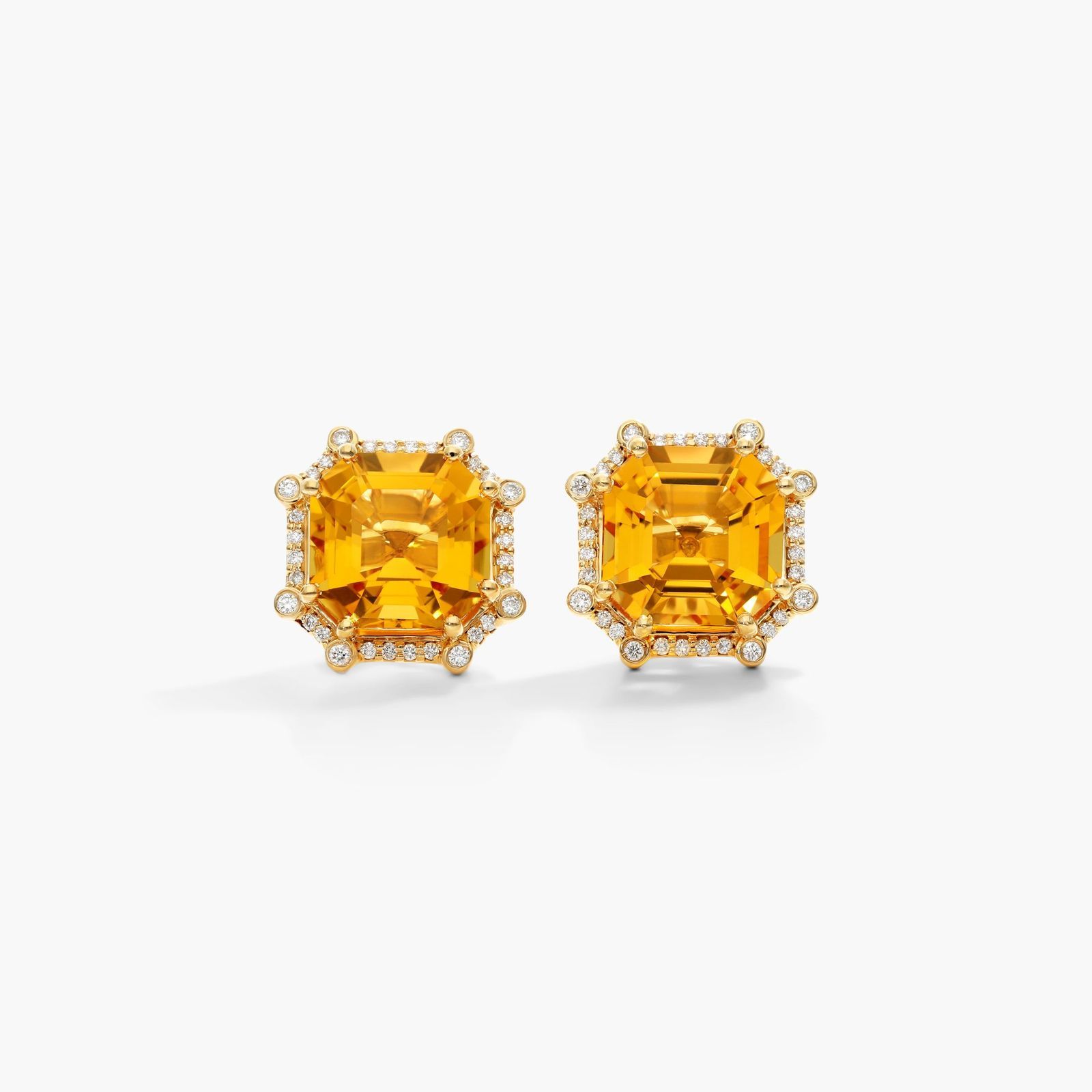 18K Yellow Gold Octagon Citrine and Diamond Frame Earrings