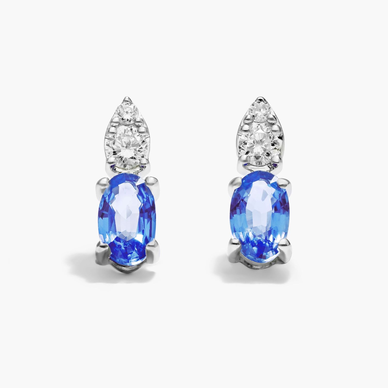 Blue Sapphire And Diamond Earrings In 14K White Gold