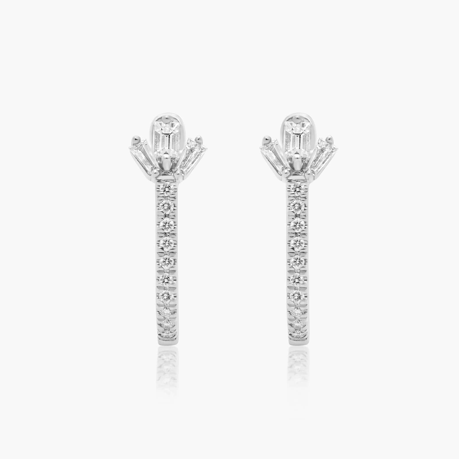 14K White Gold Dainty Diamonds Petal Detail Huggie Hoop Earrings