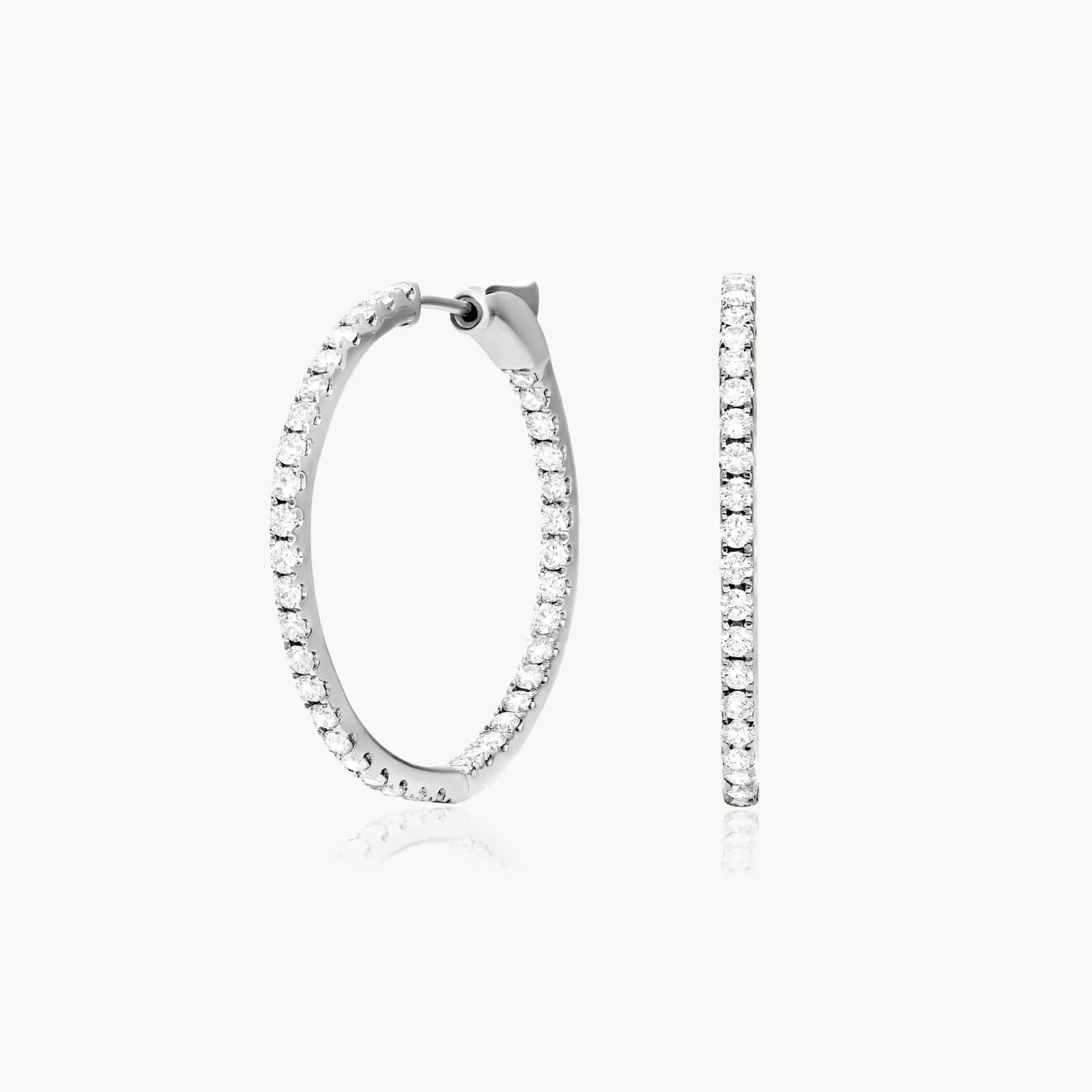 Inside Out 1.5 CTW Round Diamond Hoop Earrings In 14K White Gold