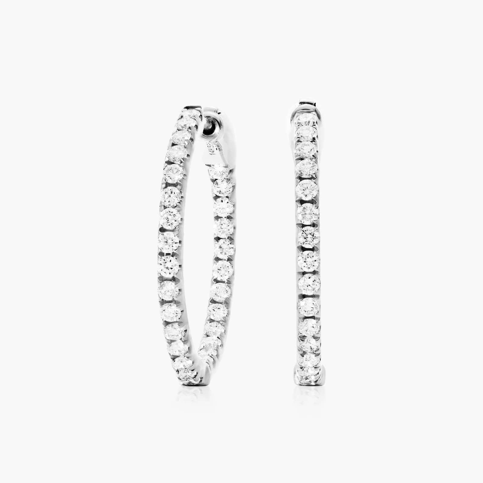 Inside Out 1 CTW Round Diamond Hoop Earrings In 14K White Gold