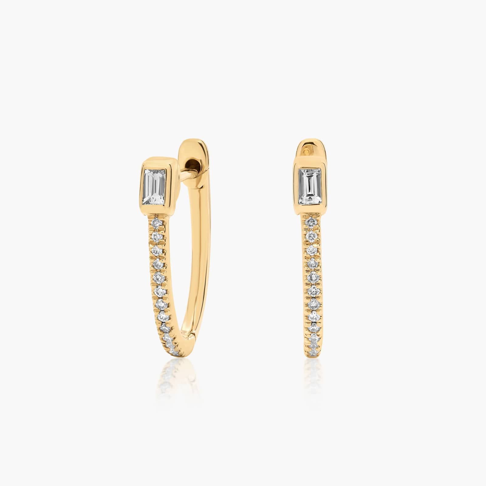 Beautiful diamond huggie hoop earrings are expertly crafted with a baguette diamond detail, resulting in a must-have pair of earrings. Pair them with any look for an elegant yet spunky amount of sparkle.