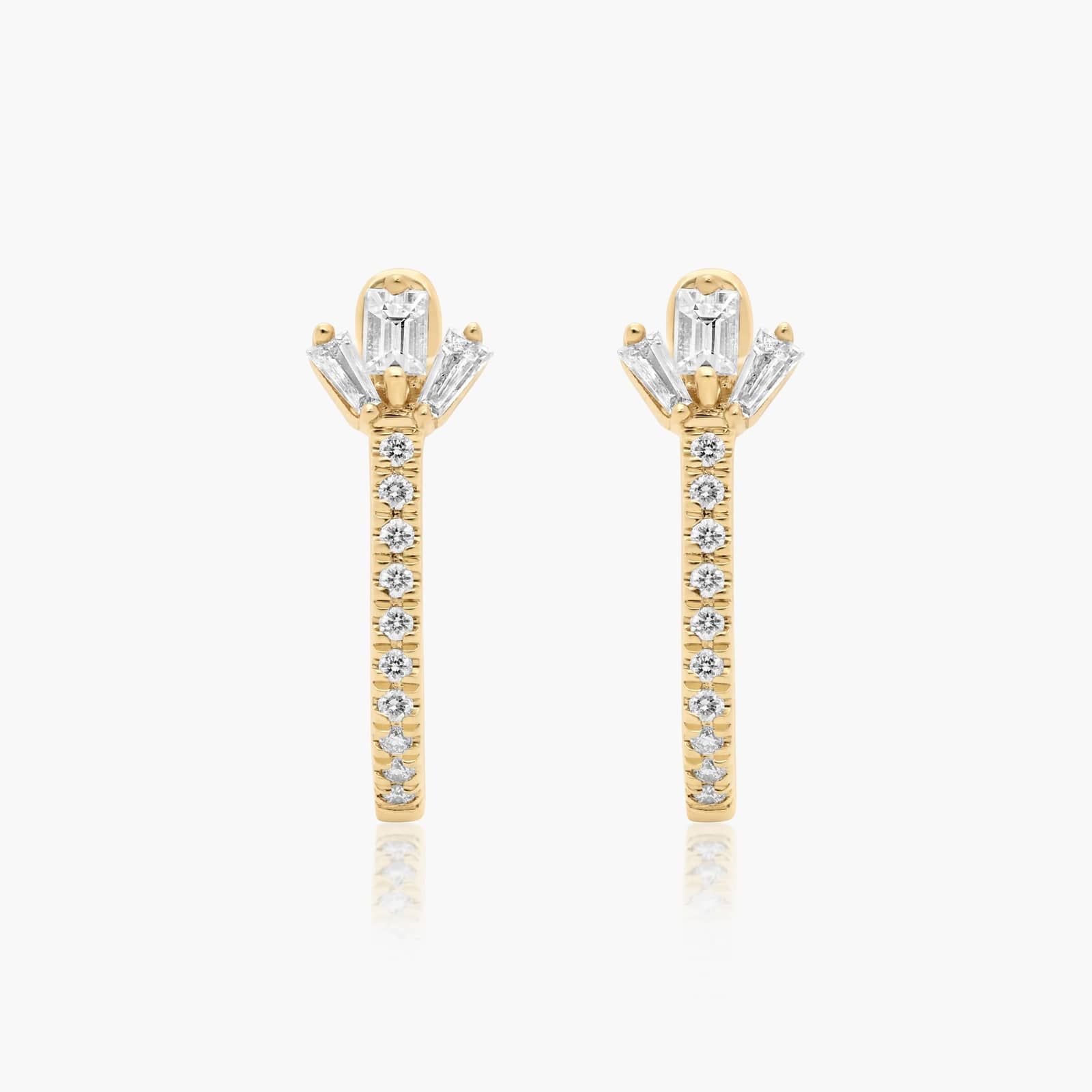 Beautiful diamond huggie hoop earrings are expertly crafted with a petal diamond detail, resulting in a must-have pair of earrings. Pair them with any look for an elegant yet spunky amount of sparkle.