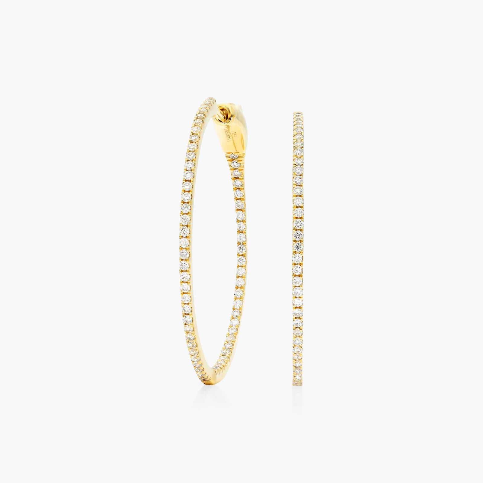 Make a grand entrance with these chic pair of diamond round hoops! Exquisitely crafted in 14k yellow gold with highly polished smooth finish. The hoops feature an inside out design prong set with round brilliant cut diamonds, nicely secured with comfortable hinged snapbacks. These gorgeous hoop earrings are a staple for every jewelry connoisseur!