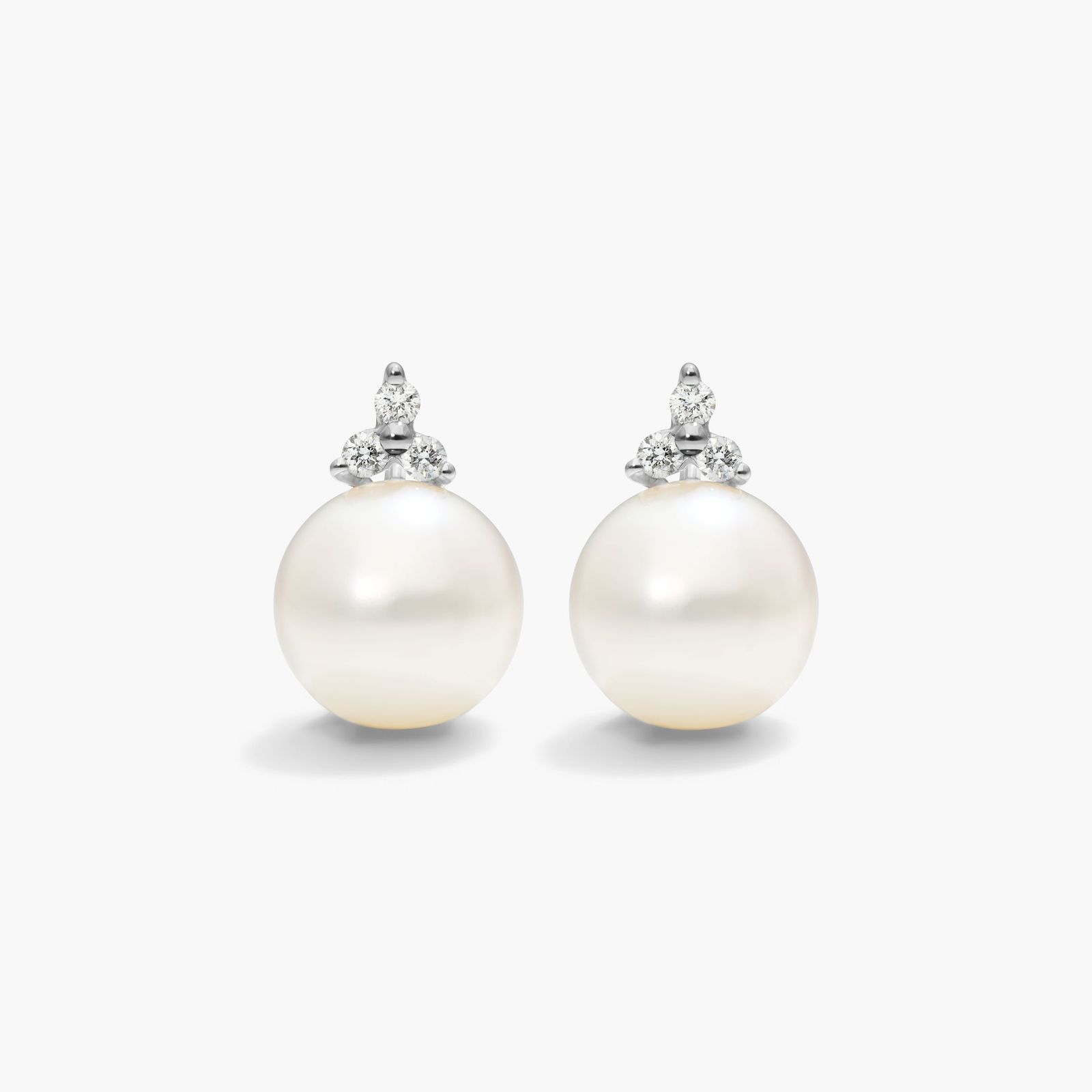 A must in any jewelry collection, this pair of gorgeous 9.0 to 10.0 mm freshwater pearl studs offers a little extra with a dazzling, prong set trio of diamonds for a regal take on a sophisticated staple.