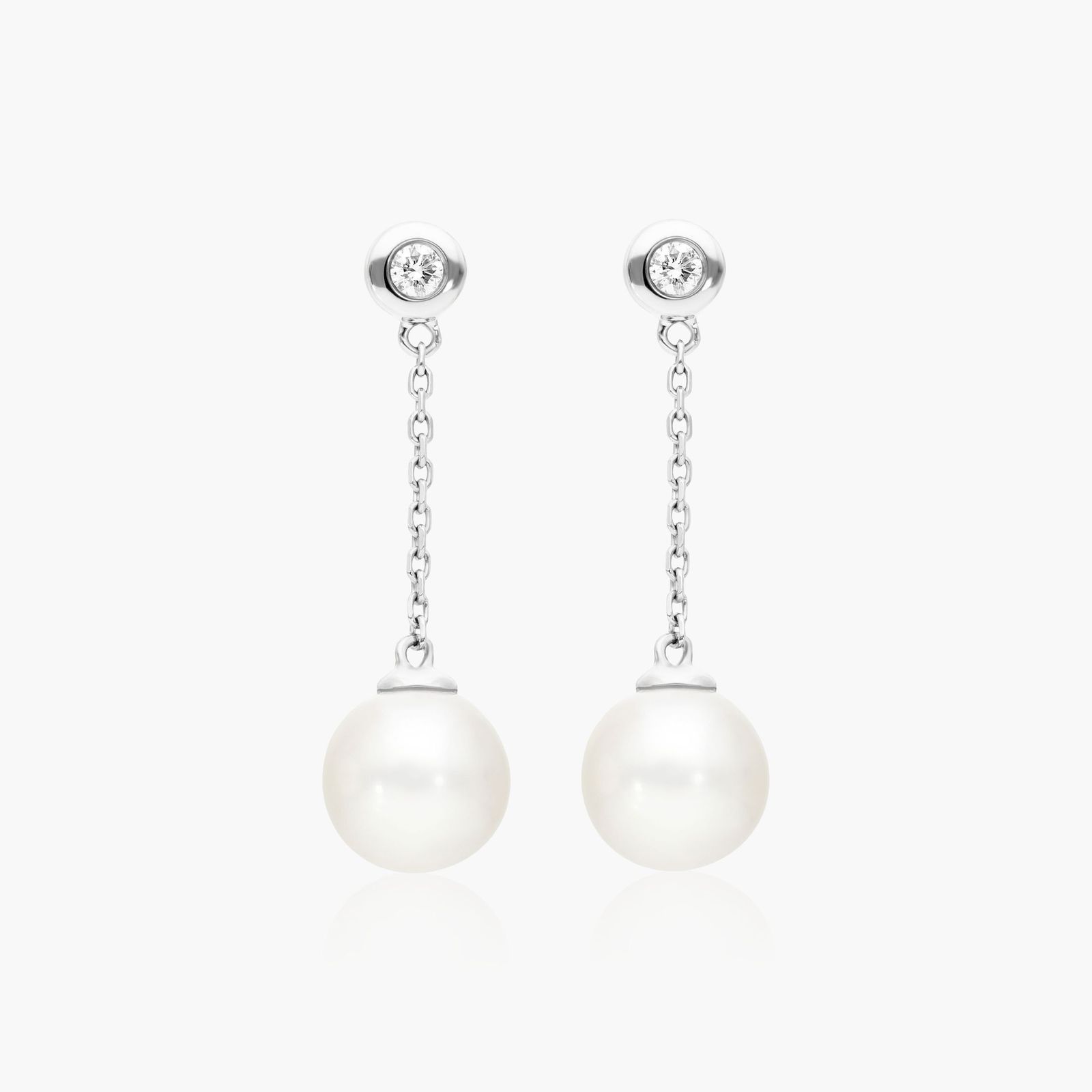 Freshwater Pearl And Bezel Set Diamond Drop Earrings In 14K White Gold (8.0-8.5mm)