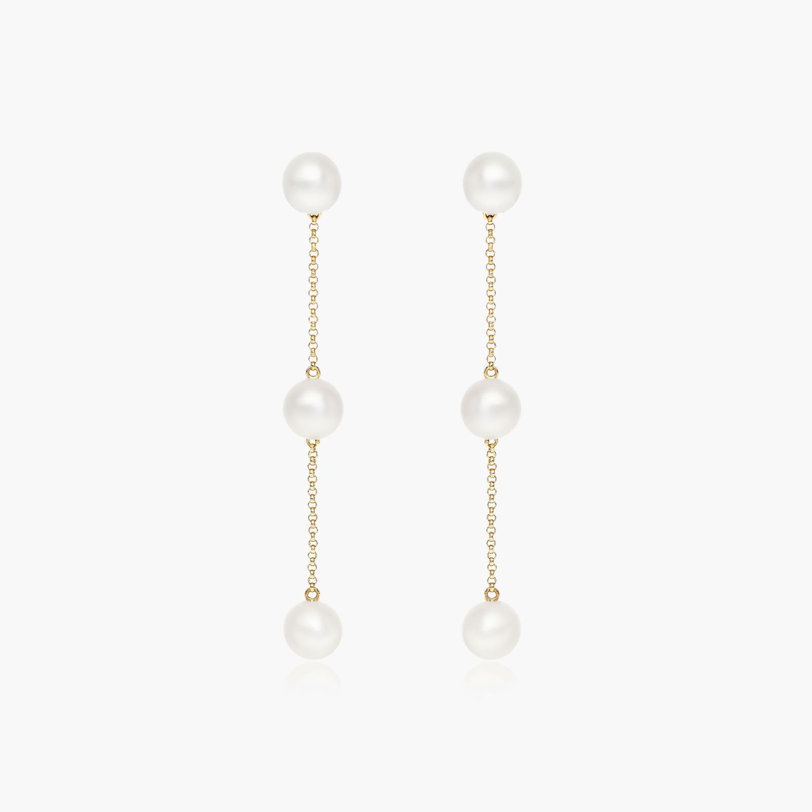 Cultured Freshwater Pearl Station Earrings In 14K Yellow Gold