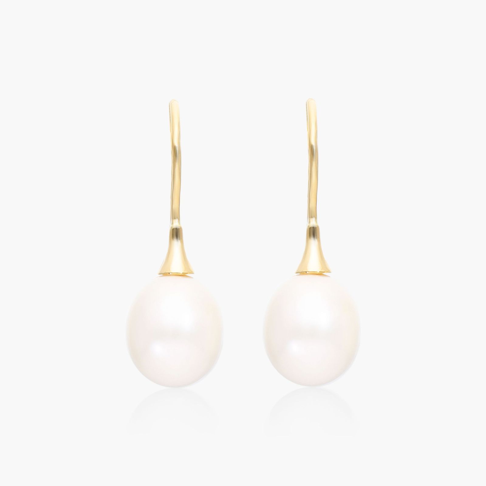 Luminous 9mm drop shape freshwater pearls take the center stage to stand on their own in these hook earrings.