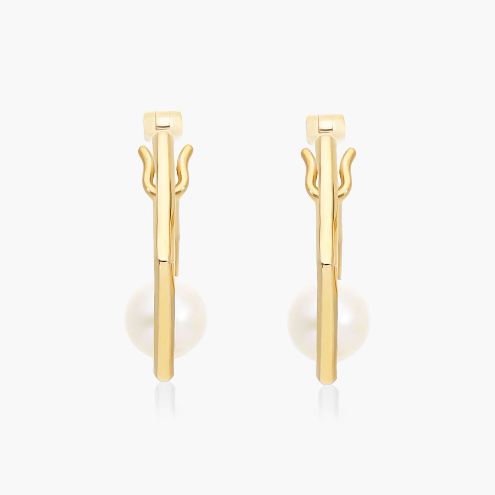 Minimalistic Cultured Freshwater Pearl Hoop Earring In 14K Yellow Gold