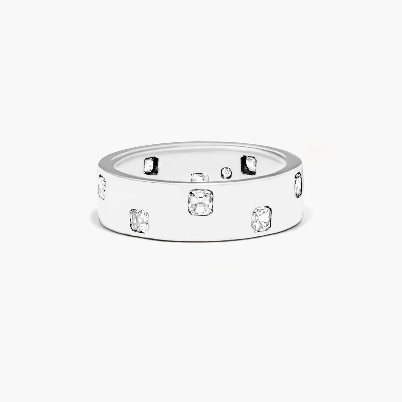 Scattered Asscher Cut Diamond Ring In 14K White Gold
