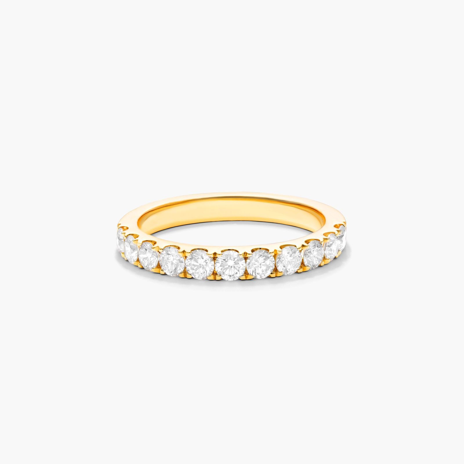 This versatile and classic ring reveals a glowing row of round brilliant diamonds in finely crafted micro pavé settings.