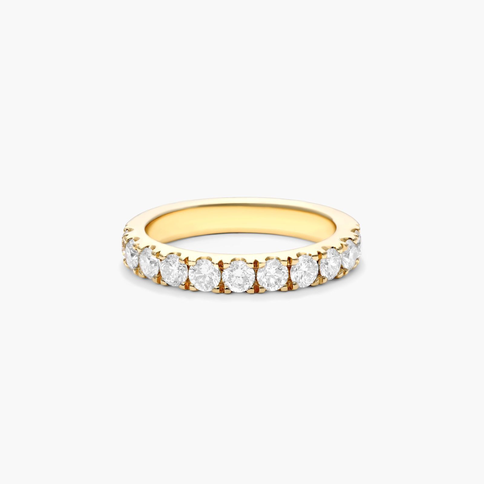 This versatile and classic ring reveals a glowing row of round brilliant diamonds in finely crafted micro pavé settings.