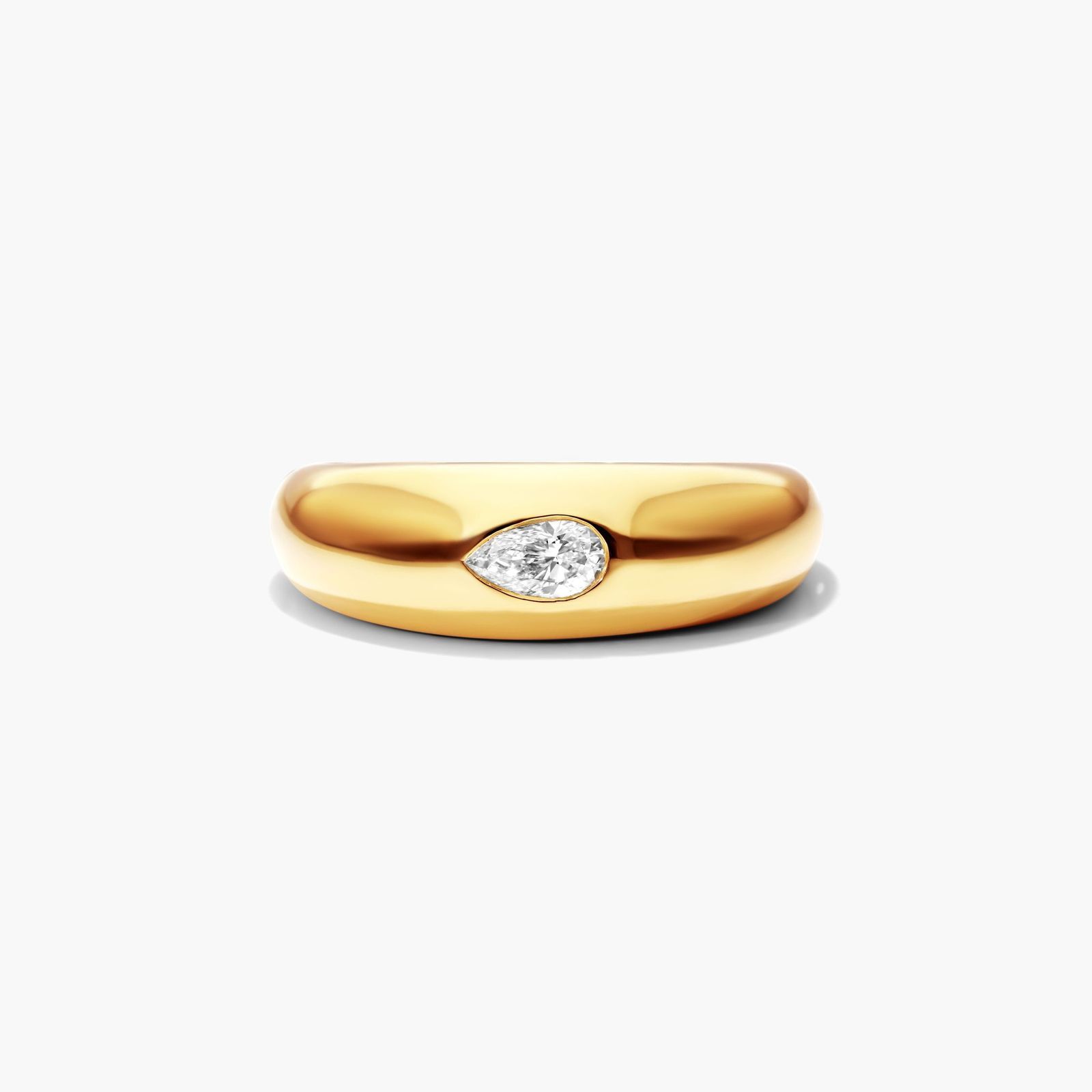 Pear Shape Diamond Dome Ring In 14K Yellow Gold