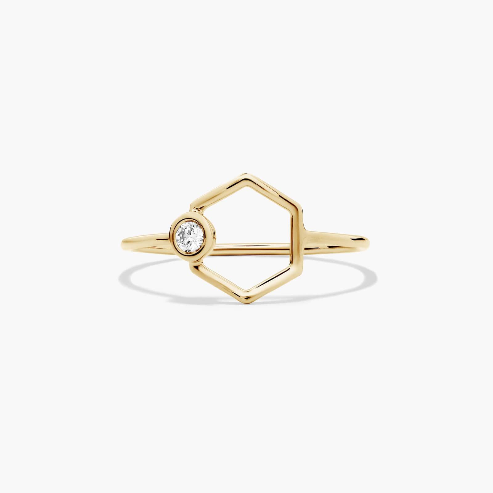 Dainty Diamonds Geometric Hexagon Ring In 14K Yellow Gold