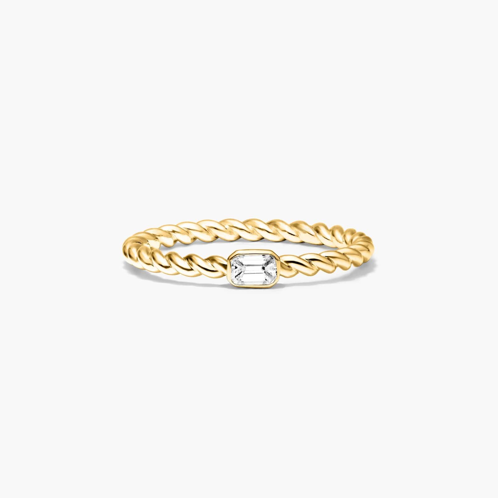 Emerald Cut Diamond Solitaire Cable Ring In 14K Yellow Gold
