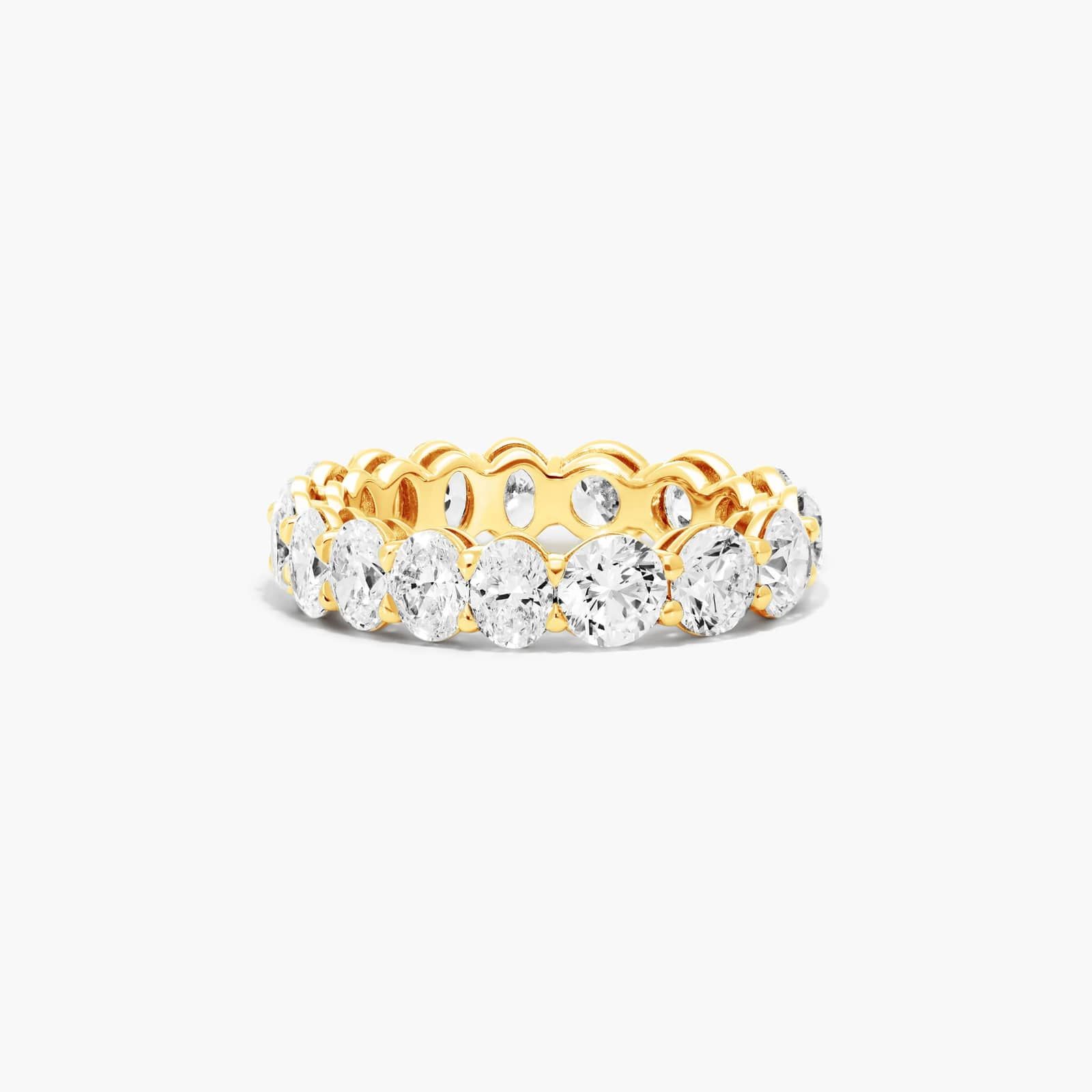 This eternity ring offers the best of both worlds… round diamonds on one side and elegant oval diamonds on the opposite side. Two different looks in one ring.