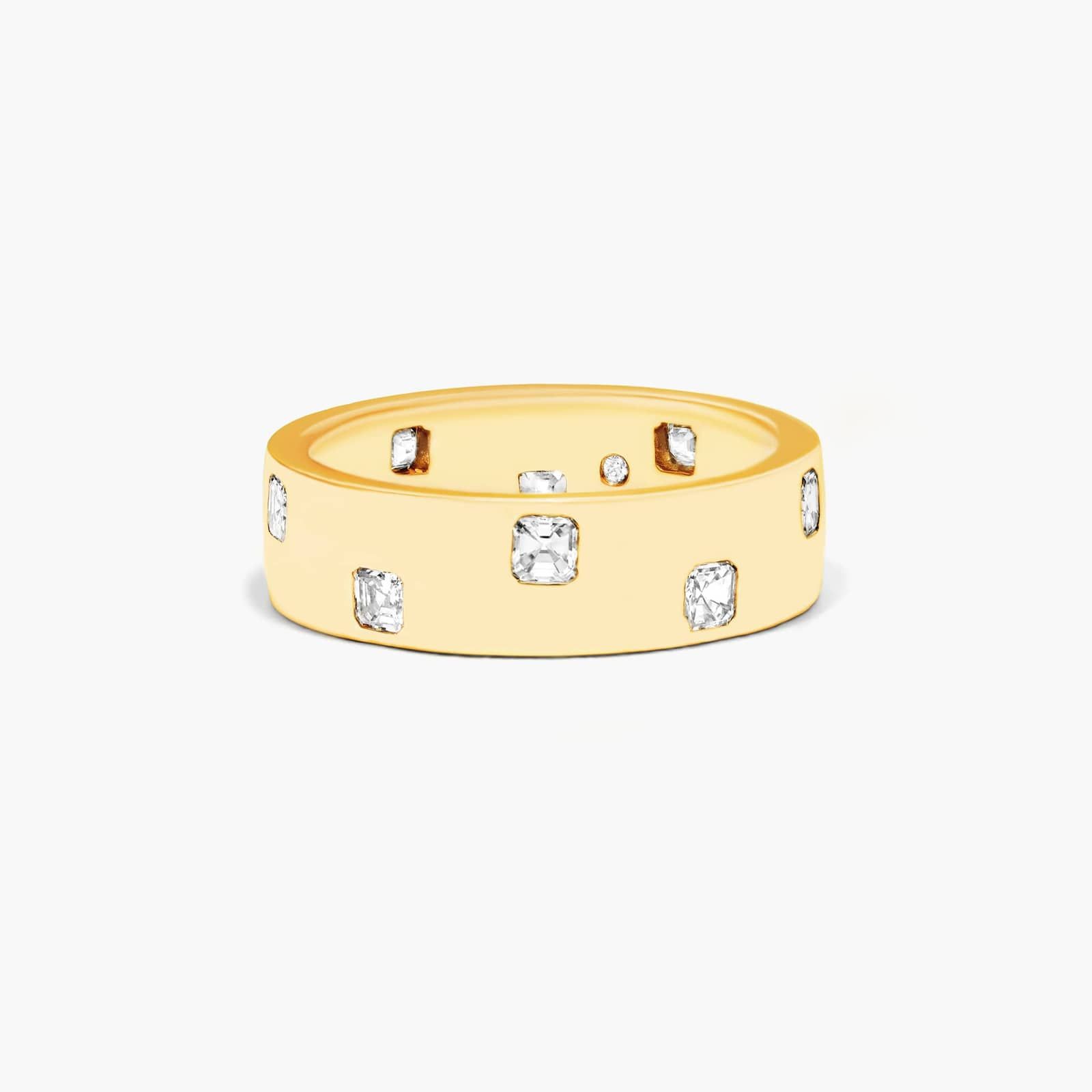 Scattered Asscher Cut Diamond Ring In 14K Yellow Gold