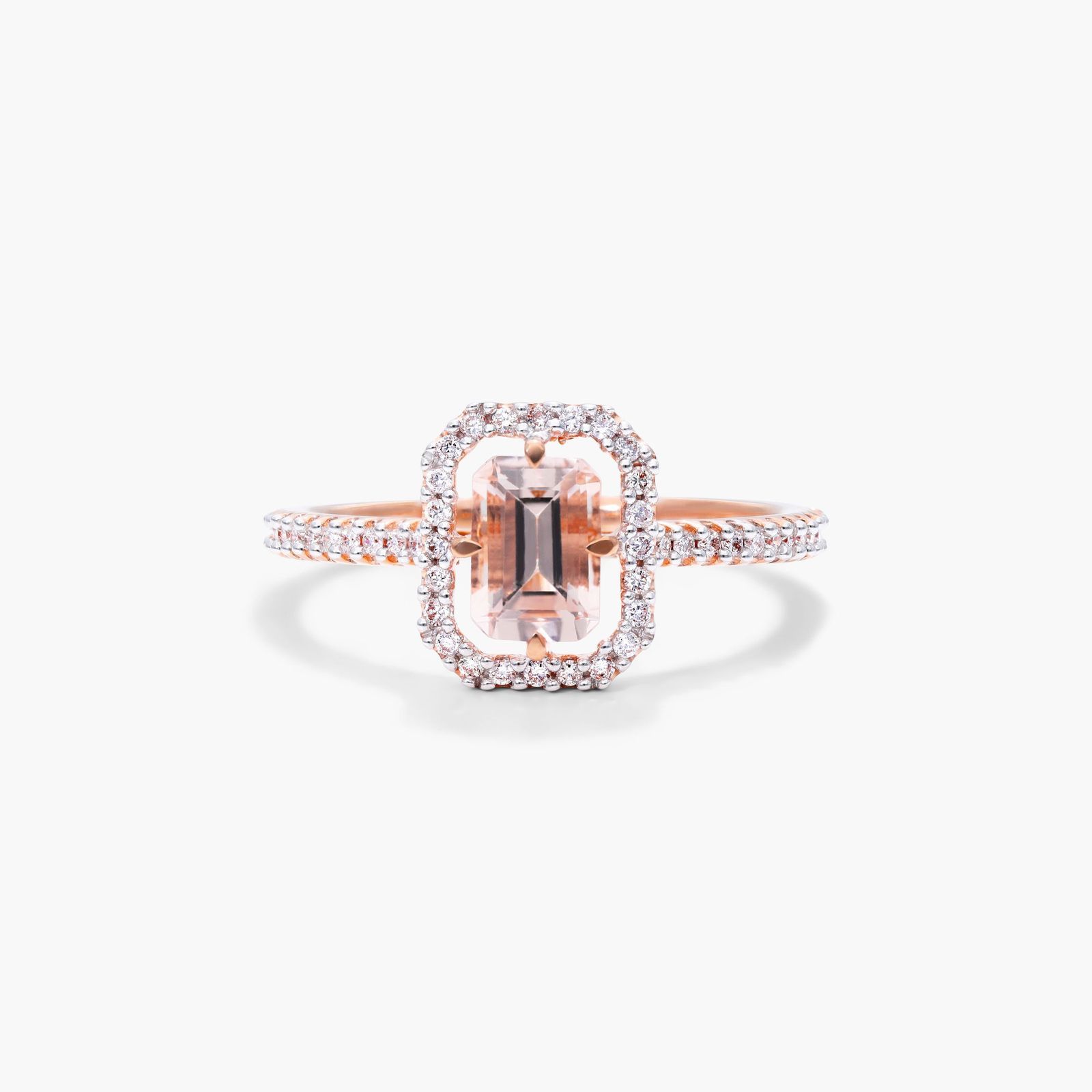 14K Pink Gold Morganite and Diamond Floating Halo Ring (7.0x5.0mm)