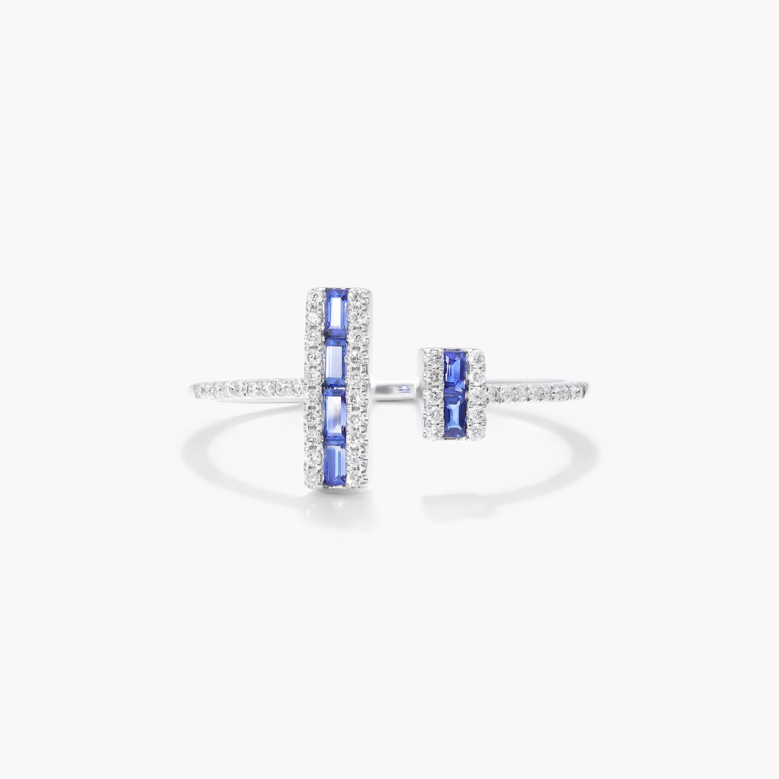 14k White Gold Open Double Bar Sapphire and Diamond Ring