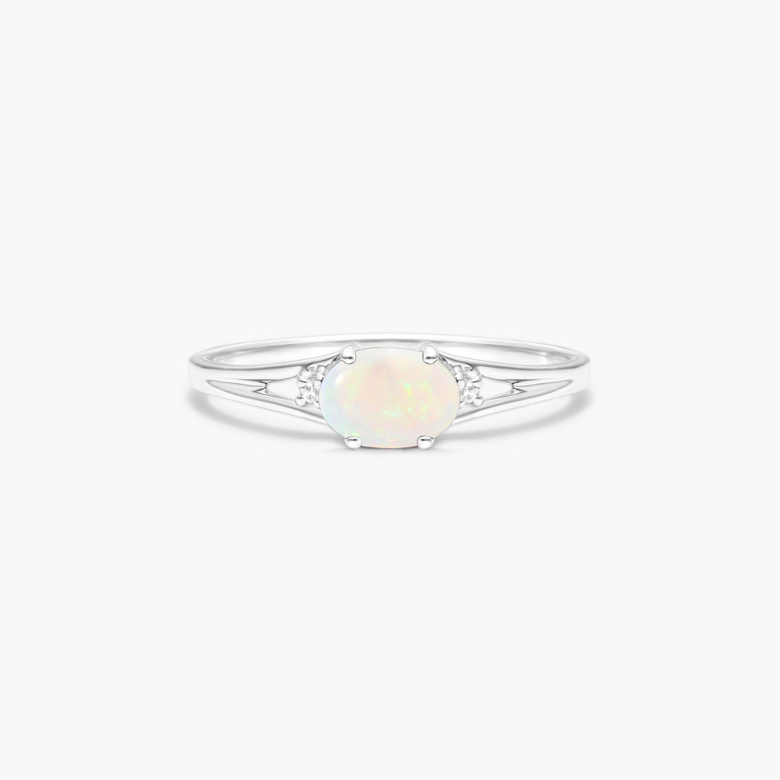 Oval Opal And Diamond Accent Birthstone Ring In 14K White Gold